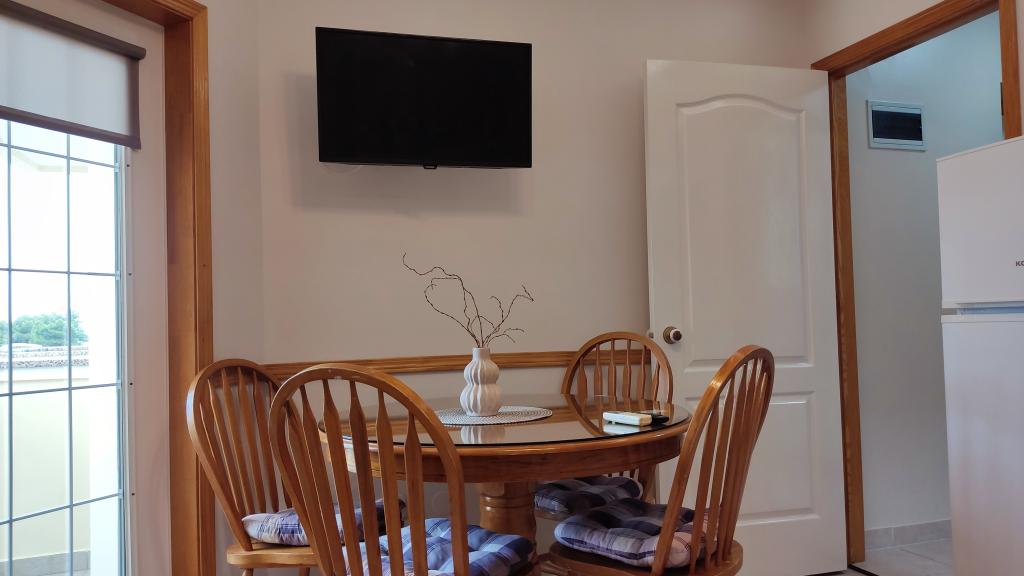 Nastanjeni smo bili v sobi 2+1. Stanovanje je bilo čisto in dišeče. Morje neposredno čez cesto. Direkten pogled na morje in sončni zahod... edina stvar, ki je bila mali minus, je pomanjkanje prostora za tri osebe, vendar se da urediti. In vodo je bilo strašno težko prilagoditi - ali ledeno ali vročo, a to so res malenkosti. Lastnik je bil ustrežljiv. Na željo nam je dala tudi dodatne brisače brez doplačila ali drugih besed. .V bližini je tudi resort, ki zvečer ponuja gostinske stojnice itd. res priporočam