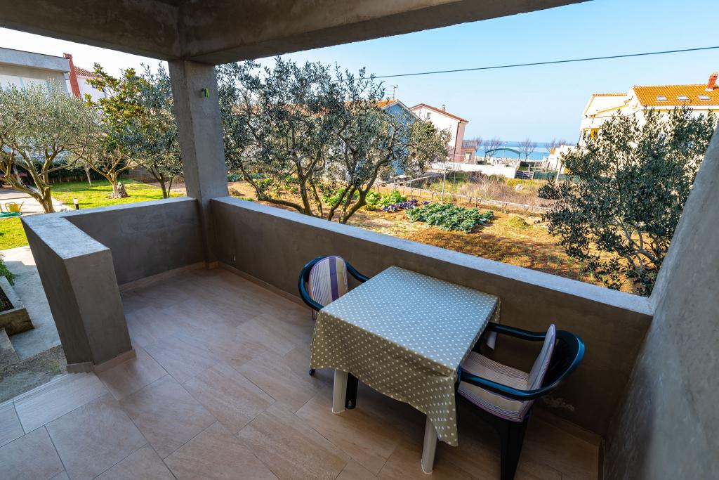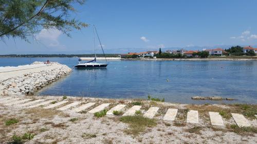 Priporočilo za ga. Mirjana in njena namestitev. Z možem sva preživela 7 čudovitih dni. Gospa je nevsiljiva, zelo nežna in ustrežljiva, prava hostesa. Namestitev v popolnoma opremljenem studiu je bila odlična, vse je bilo urejeno in čisto. Gospodinja nas je pogostila s svojimi domačimi paradižniki in kumarami (kot kaže, se ji je usmilila naša usoda, kajti v naši hiši, česar niso uničili vsiljivci in sonce, je uničil nedavni žled). Dovolj prostora za parkiranje. Lepo urejeno dvorišče. Najbližja plaža je dobesedno nekaj korakov od hiše. Plaža je urejena, zunanji del je betoniran, v morju je pesek. Na voljo sta tudi 2 tuša s toplo vodo. Trgovine, restavracije, cerkev... vse je blizu. Avta sploh nisva rabila. Prižgali smo ga le, ko smo šli na koncert v Vir in Aqua park v Biogradu.