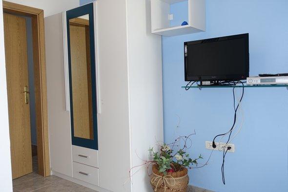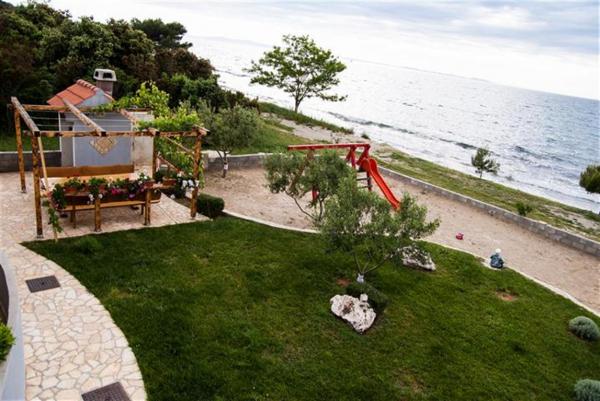 Naši apartmaji se nahaja na obali, plaža ločena od velike gneče in hrupa. Od morja, le nekaj metrov, in so idealni za družine z otroki, saj na vrt ponuja peščeno igrišče z gugalnicami, tobogani, medtem ko brezskrbno žar ali se sprostite ob hladni pijači na terasi. Vsi apartmaji imajo pogled na morje in so opremljeni s satelitsko televizijo in klimatsko napravo. Dostop z invalidskim vozičkom je težko. Hišni ljubljenčki niso dovoljeni.