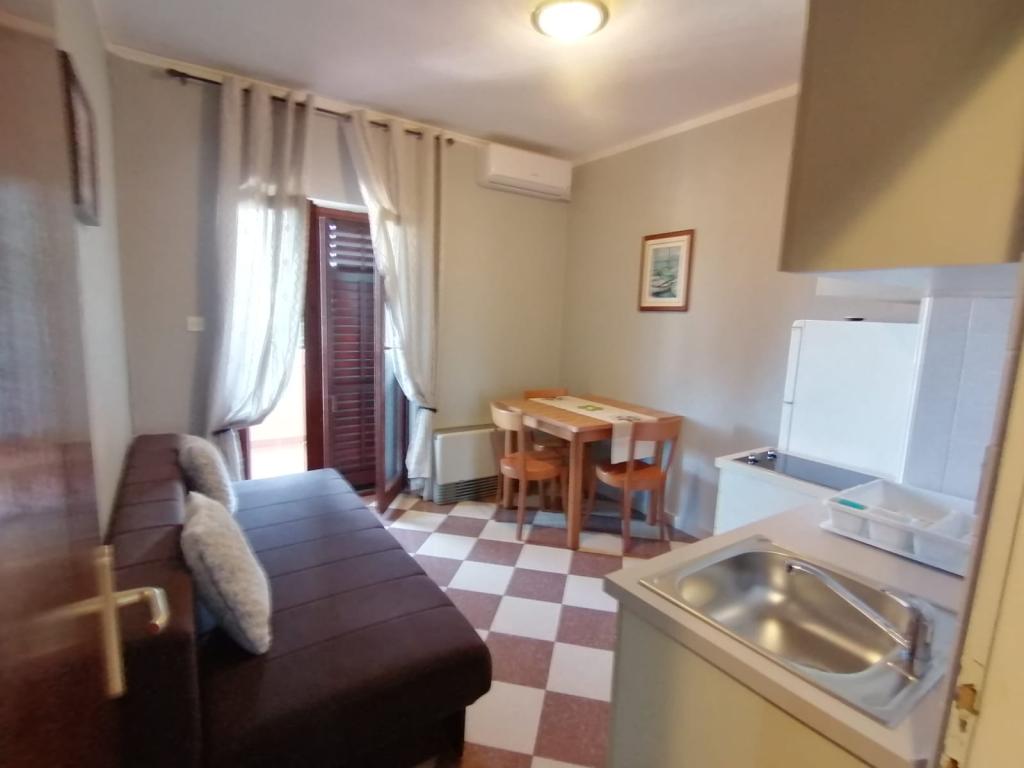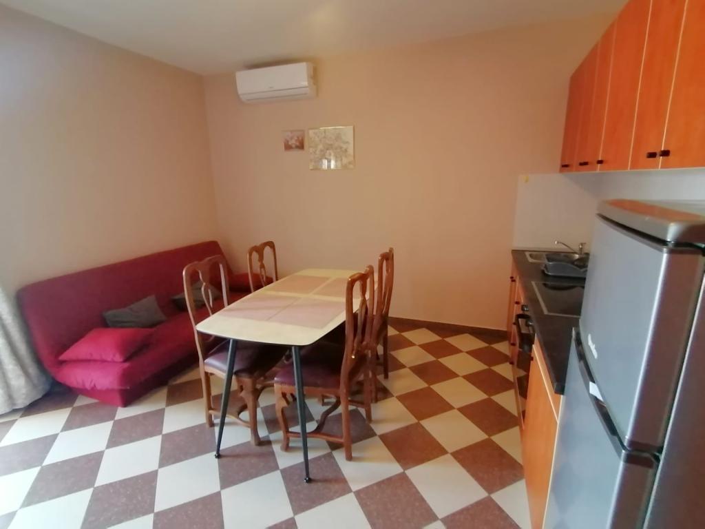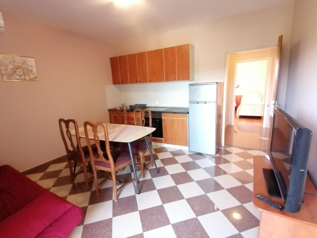 Popolnoma opremljen apartma, ki se nahaja v prvi vrsti do morja. Varovano parkirišče, Wi-fi. Žar na voljo. 30 m stran od vhoda v turistično naselje Zaton. V krogu 50 m peščena plaža primerna za otroke, mini telovadnica, caffe bar, restavracija, pekarna, odbojka na mivki, mini telovadnica, otroško igrišče.