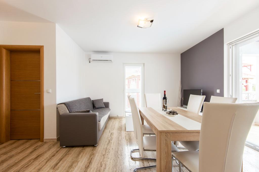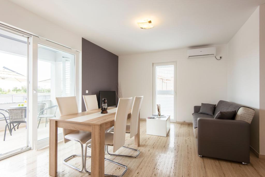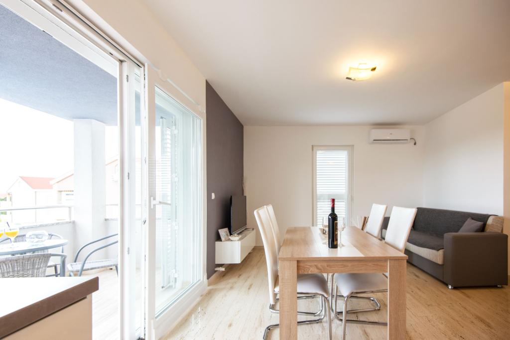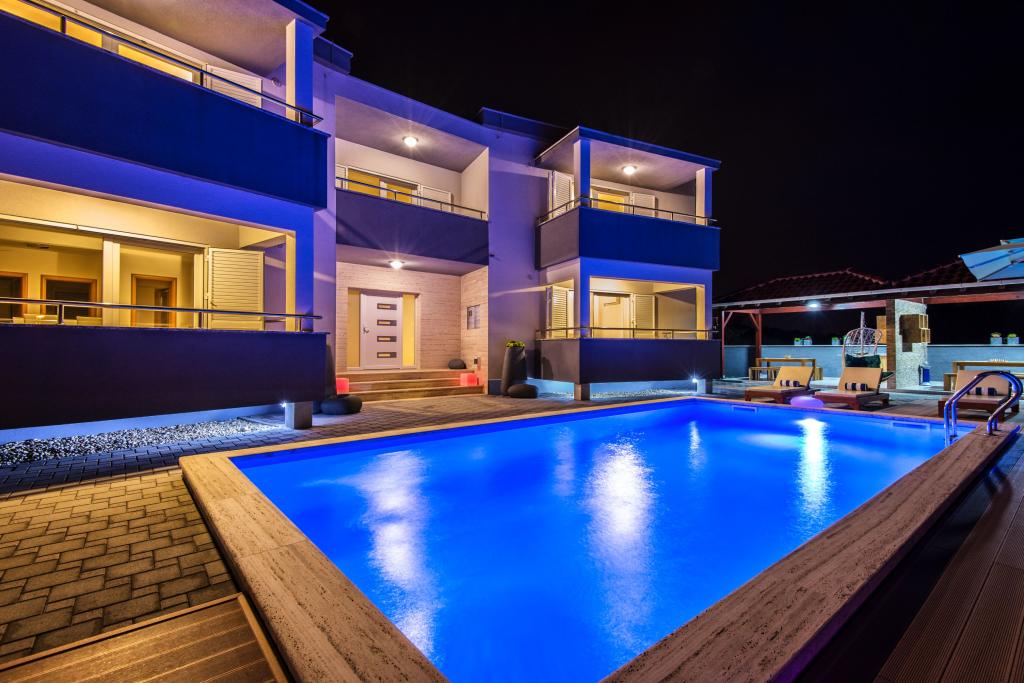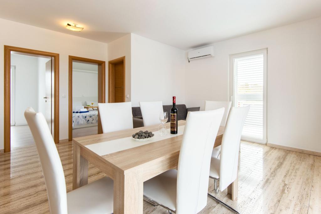 Apartmaji Villa More - hiša s štirimi apartmaji (največ 4 osebe) in dvema sobama (vsaka soba največ 2 osebi) v Zatonu, v neposredni bližini turističnega naselja Zaton. Soba Val (pritličje) nima balkona, soba Sunce (1. nadstropje - ima balkon), vhod na balkon je skozi hodnik, ne neposredno iz sobe. Objekt se nahaja 5 minut hoje od turističnega naselja Zaton in plaže. Vila More ima bazen, jacuzzi in kamin z žarom. Na voljo je tudi pralni stroj (skupna uporaba). Ponujamo tudi brezplačna kolesa in brezplačno parkiranje ob hiši.
