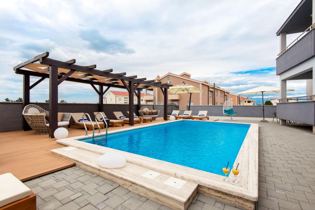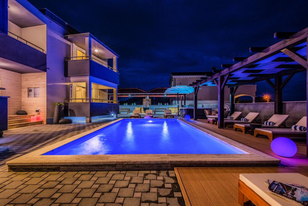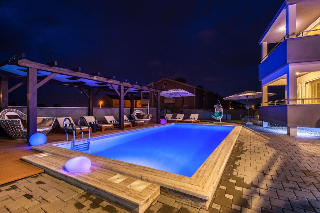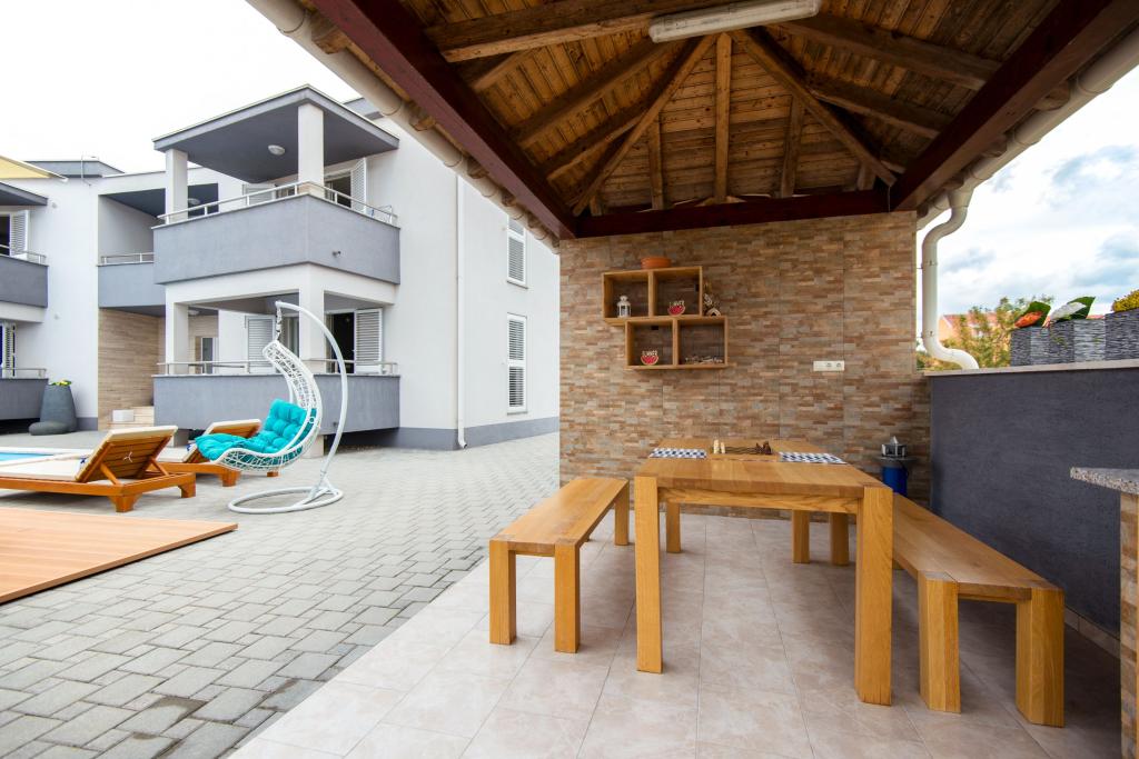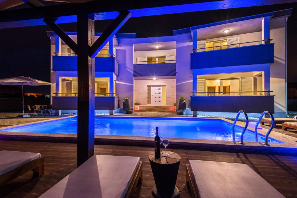Apartmaji Villa More - hiša s štirimi apartmaji (največ 4 osebe) in dvema sobama (vsaka soba največ 2 osebi) v Zatonu, v neposredni bližini turističnega naselja Zaton. Soba Val (pritličje) nima balkona, soba Sunce (1. nadstropje - ima balkon), vhod na balkon je skozi hodnik, ne neposredno iz sobe. Objekt se nahaja 5 minut hoje od turističnega naselja Zaton in plaže. Vila More ima bazen, jacuzzi in kamin z žarom. Na voljo je tudi pralni stroj (skupna uporaba). Ponujamo tudi brezplačna kolesa in brezplačno parkiranje ob hiši.