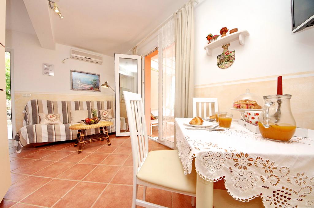 Turistična taksa je vključena v ceno.Znesek akontacije se vrne le v primeru odpovedi rezervacije vsaj 60 dni pred prihodom. V primeru nepravočasne odpovedi ali neprihoda se akontacija zadrži. Gost je dolžan obvestiti o spremembi datuma prihoda ali o poznem prihodu (po 21.00 uri). V primeru poznejšega prihoda od rezerviranega datuma (naslednji dan) ali predčasnega odhoda je gost dolžan plačati znesek za celotno obdobje rezervacije. Svetujemo vam, da sklenete polico odpovedi pri zavarovalnici po vaši izbiri. V primeru škode na premoženju je gost dolžan prijaviti morebitno škodo, ki jo povzroči sam. Gost je dolžan povrniti povzročeno škodo. Nismo dolžni nositi odgovornosti v primeru tatvine, nesreče ali škode na premoženju ali osebah, niti ne prevzemati odgovornosti za škodo, ki jo povzročijo grom, toča, požar ... Gostom svetujemo, da svojo lastnino zavarujejo pri zavarovalnici. Hišni ljubljenčki v apartmajih niso dovoljeni.