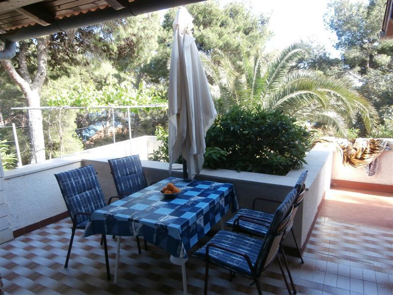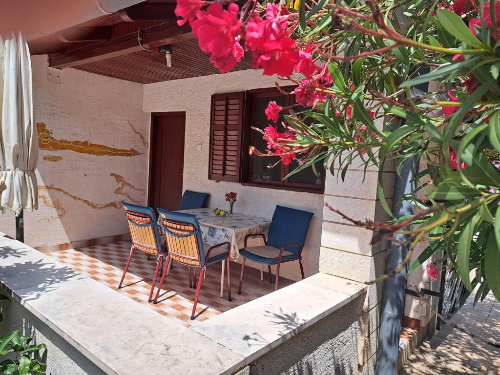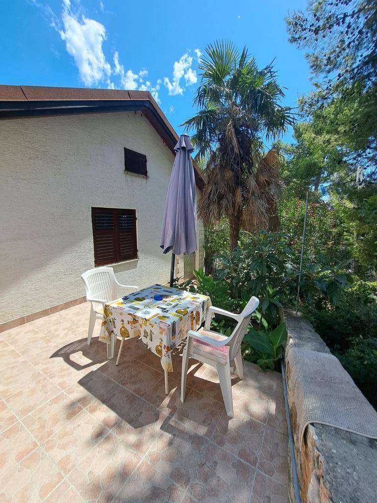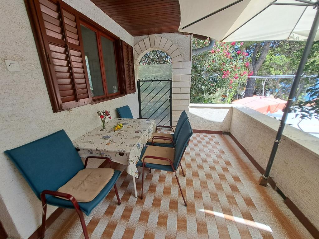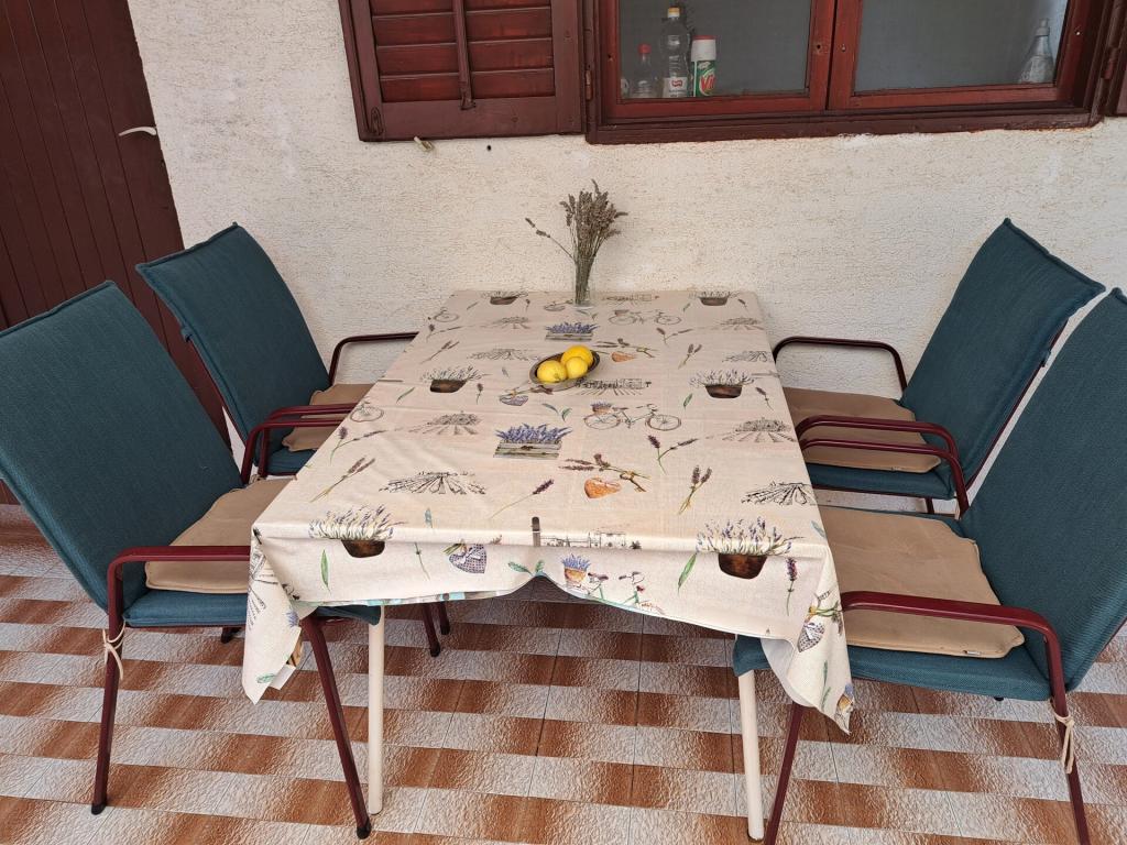 Hišo sestavljata dvosobni apartma A4 (4+0) in studio apartma A2 (2+1) v pritličju. Hiša je nova v borovem gozdu v bližini lepe prodnate plaže, 60m od plaže. Apartma A4, ID51294 je sestavljen iz dveh spalnic, 2+2 ležišč (zakonske postelje), po potrebi še eno ležišče. Apartma A4 (4+0) je v pritličju, s kuhinjo, kopalnico in pokrito teraso za jedilnico in posedanje ter še eno teraso za otroke in sončenje. Velikost apartmaja je cca 50 m2, terase 15 m2 in 25 m2. Ponujamo vam tudi nov Studio apartma A2 (2+1) ID 51296, velikosti 40 m2 s teraso. SAT TV in klima, internet, garaža za avto. Moja družina uporablja stanovanje med temi za najem poleti.