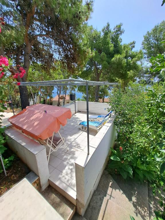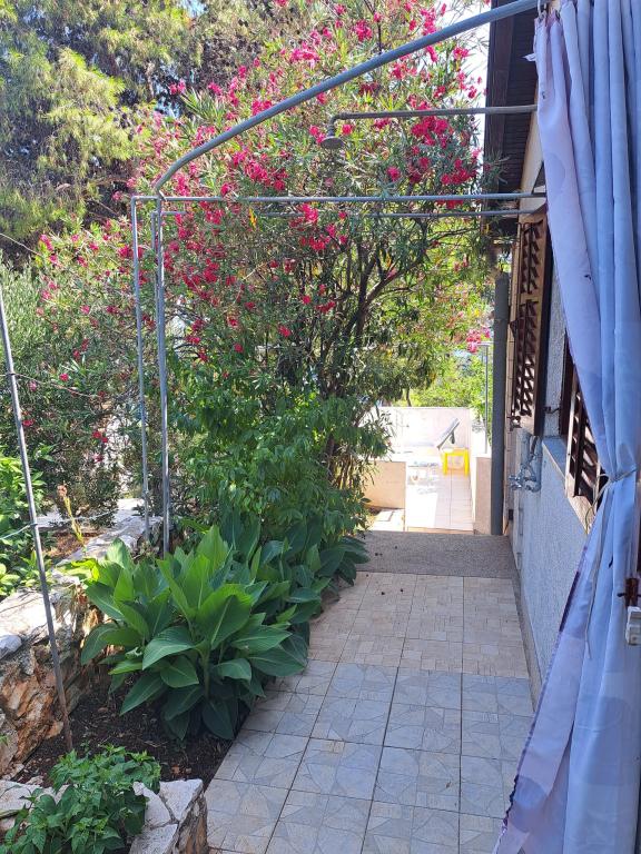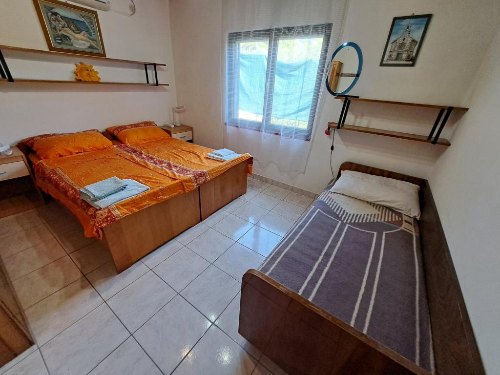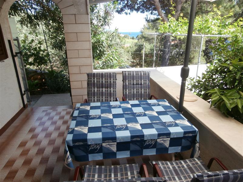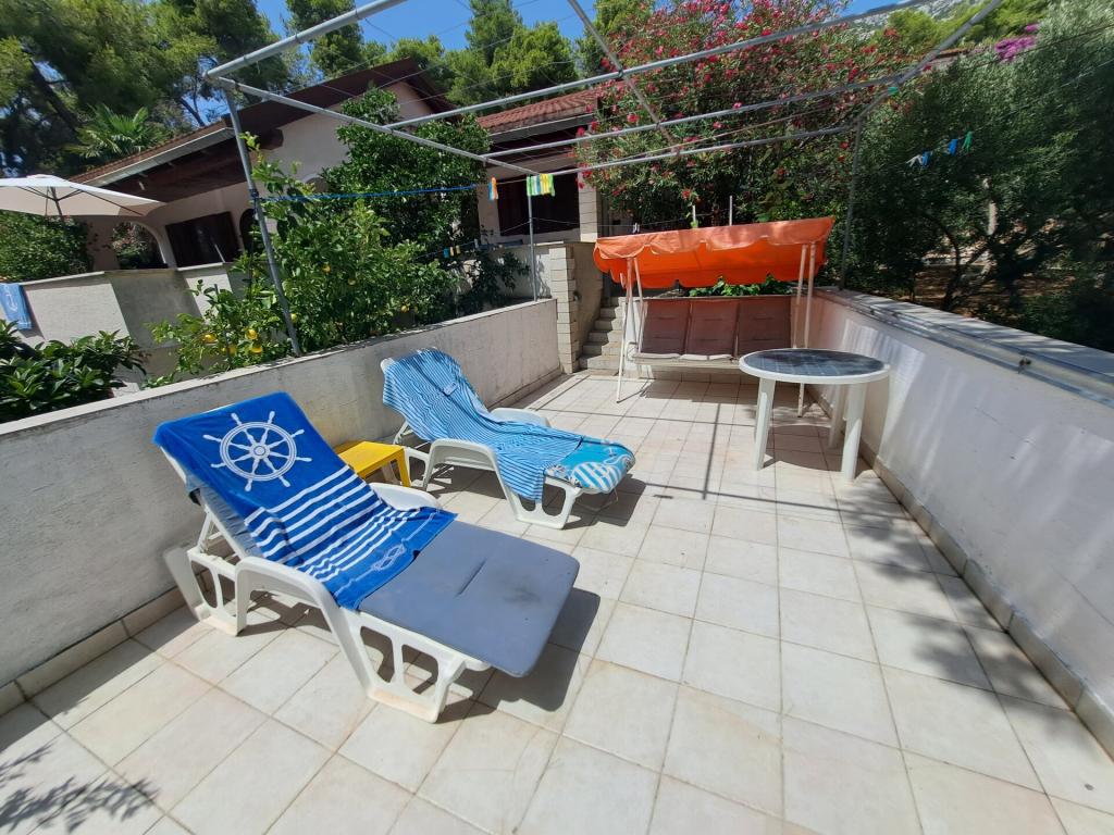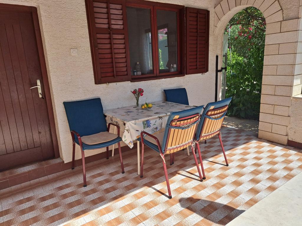 Hišo sestavljata dvosobni apartma A4 (4+0) in studio apartma A2 (2+1) v pritličju. Hiša je nova v borovem gozdu v bližini lepe prodnate plaže, 60m od plaže. Apartma A4, ID51294 je sestavljen iz dveh spalnic, 2+2 ležišč (zakonske postelje), po potrebi še eno ležišče. Apartma A4 (4+0) je v pritličju, s kuhinjo, kopalnico in pokrito teraso za jedilnico in posedanje ter še eno teraso za otroke in sončenje. Velikost apartmaja je cca 50 m2, terase 15 m2 in 25 m2. Ponujamo vam tudi nov Studio apartma A2 (2+1) ID 51296, velikosti 40 m2 s teraso. SAT TV in klima, internet, garaža za avto. Moja družina uporablja stanovanje med temi za najem poleti.