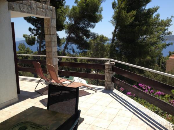 Apartma 1: Obstajata 2 spalnici, 2 kopalnici, velika dnevna soba in kuhinja. Ima 2 terasi, ena na vrtu. WIFI, klimatizirano, pogled na morje. Za 5 oseb. Apartma 2: Ima 4 spalnice, 2 kopalnici, kuhinja in 2 terasi. WIFI, klima, pogled na morje. Za 8 oseb. Apartma 3: Ima 3 spalnice, dnevno sobo, kuhinjo in dve kopalnici. Velika terasa 28m2. WIFI, klima, pogled na morje. Za 6 oseb.