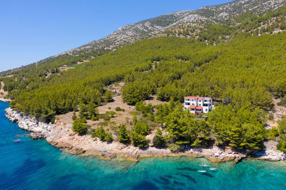 V čudovitem zalivu Petarčica, tik ob obali, smo kot velika bela ladja zasidrali Zavalo. Z njegovih oken in teras se pogled ustavi šele na obzorju, medtem ko šum valov in vetra daje občutek jadranja.Apartmaji se nahajajo na sami obali, v bližini edinstvene prodnate plaže in jame Petarčice. Hiša je na samem, obdana z borovim gozdom. Namenjena je poletnim počitnicam za vso družino, pa tudi vsem, ki želijo uživati v naravi in čistem morju. Če ste ljubitelj neokrnjene narave ali preprosto želite pobegniti od mestnega vrveža in si privoščiti oddih od vsega, smo tukaj vaš drugi dom poleti in vse leto. Zavala je vedno lepa.