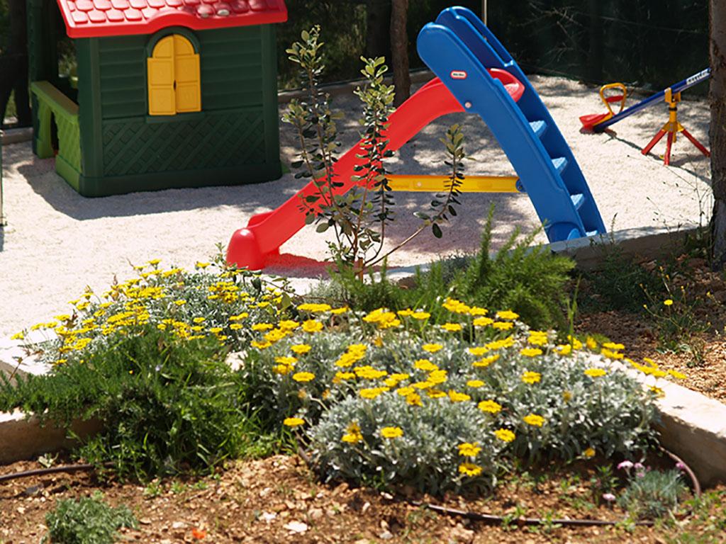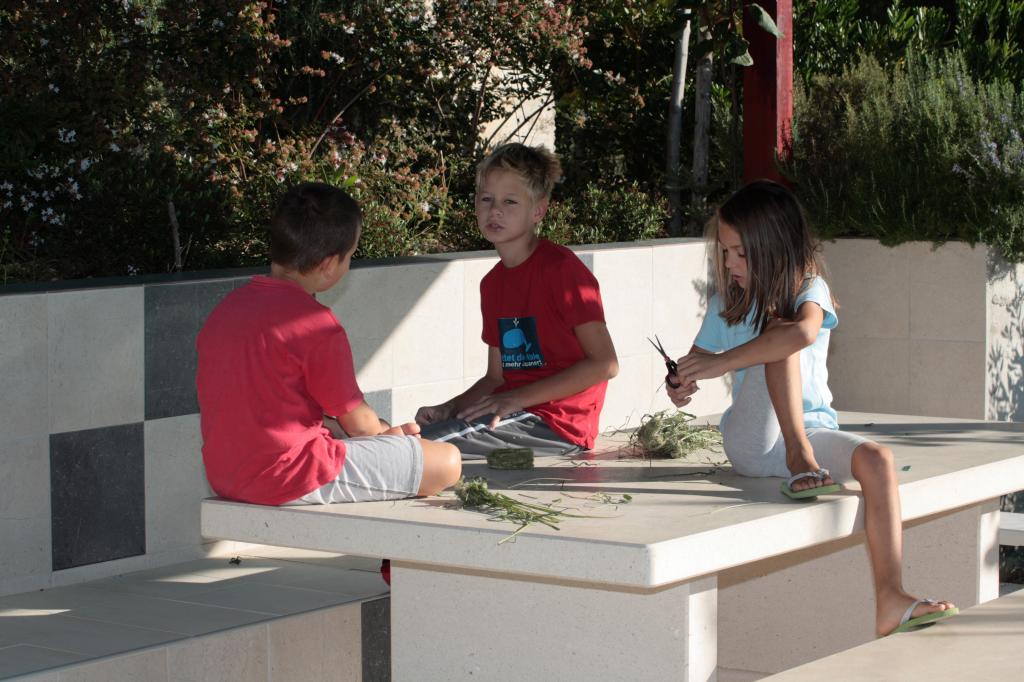 Skupna ponudba za vse goste je žar z veliko kamnito mizo, žar za otroke in terasa za sončenje z ležalniki. Za hišo je pokrito parkirišče. Apartmaje obdaja velik vrt z dišečimi sredozemskimi rastlinami.