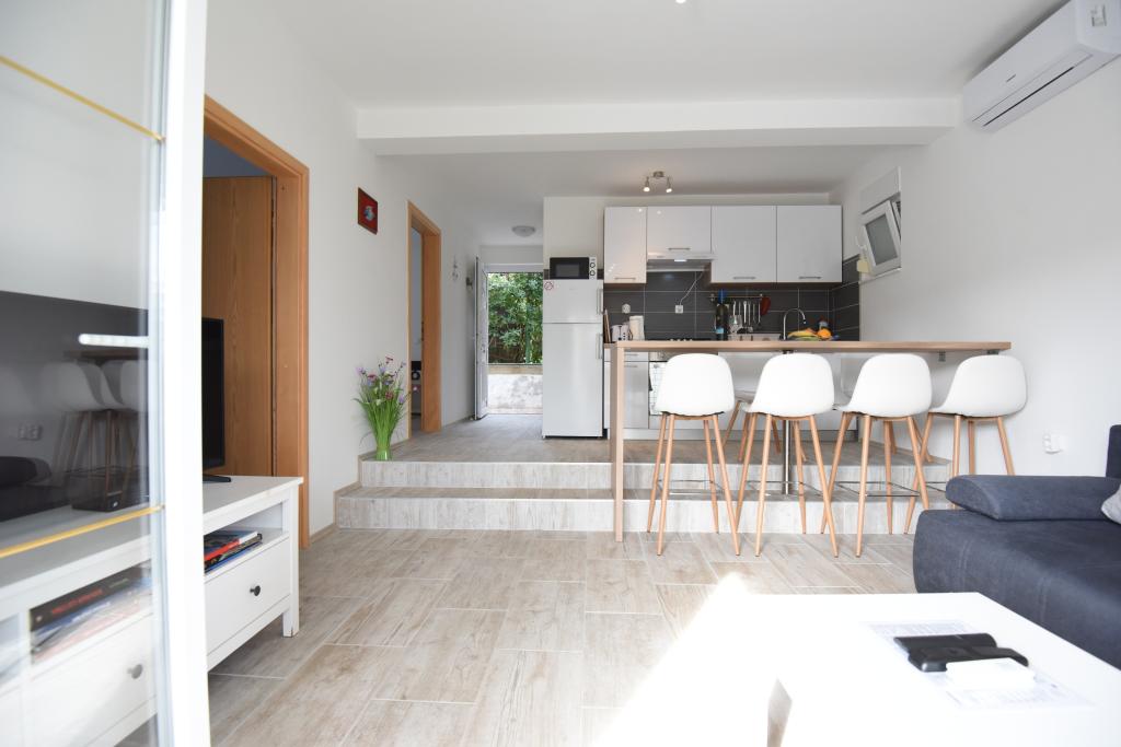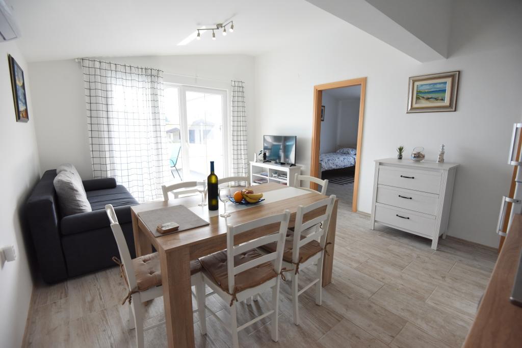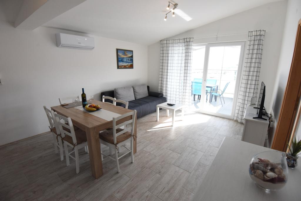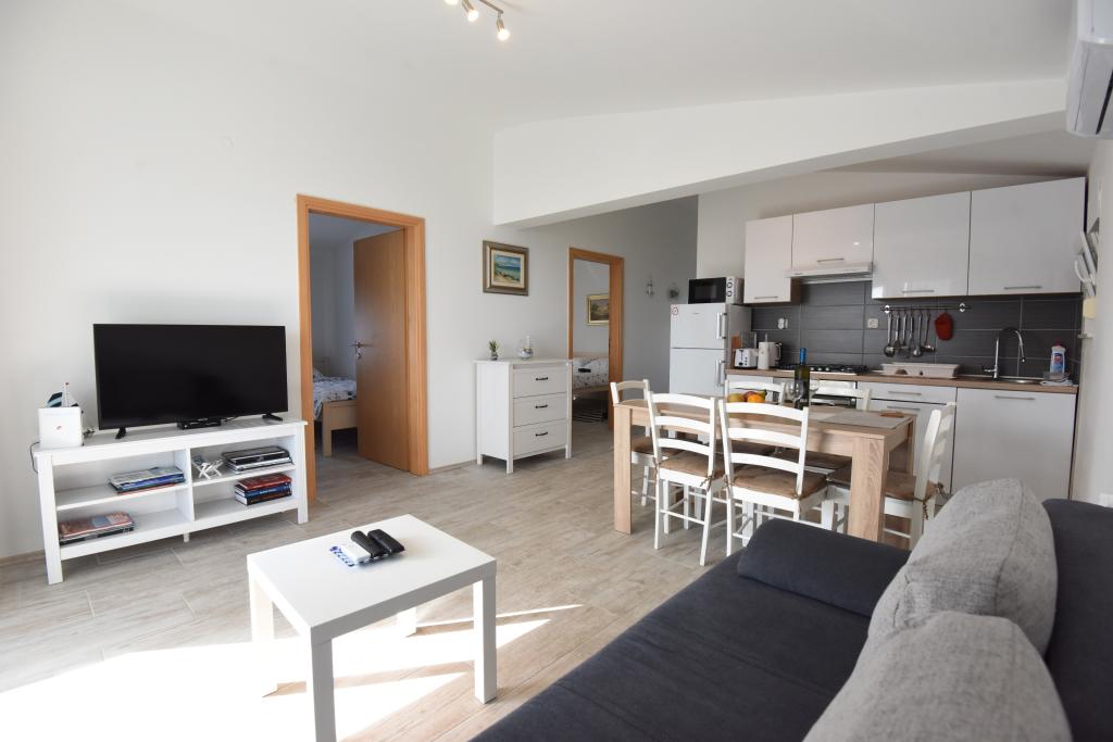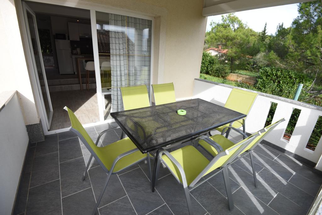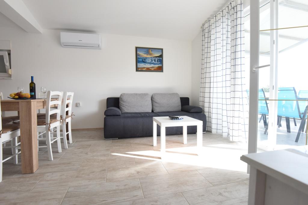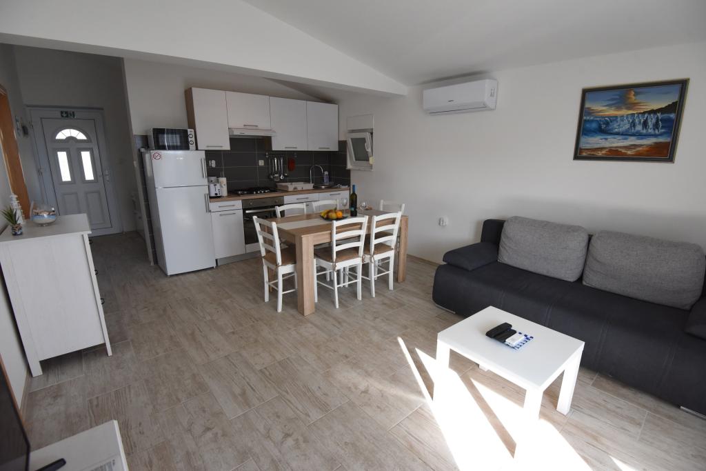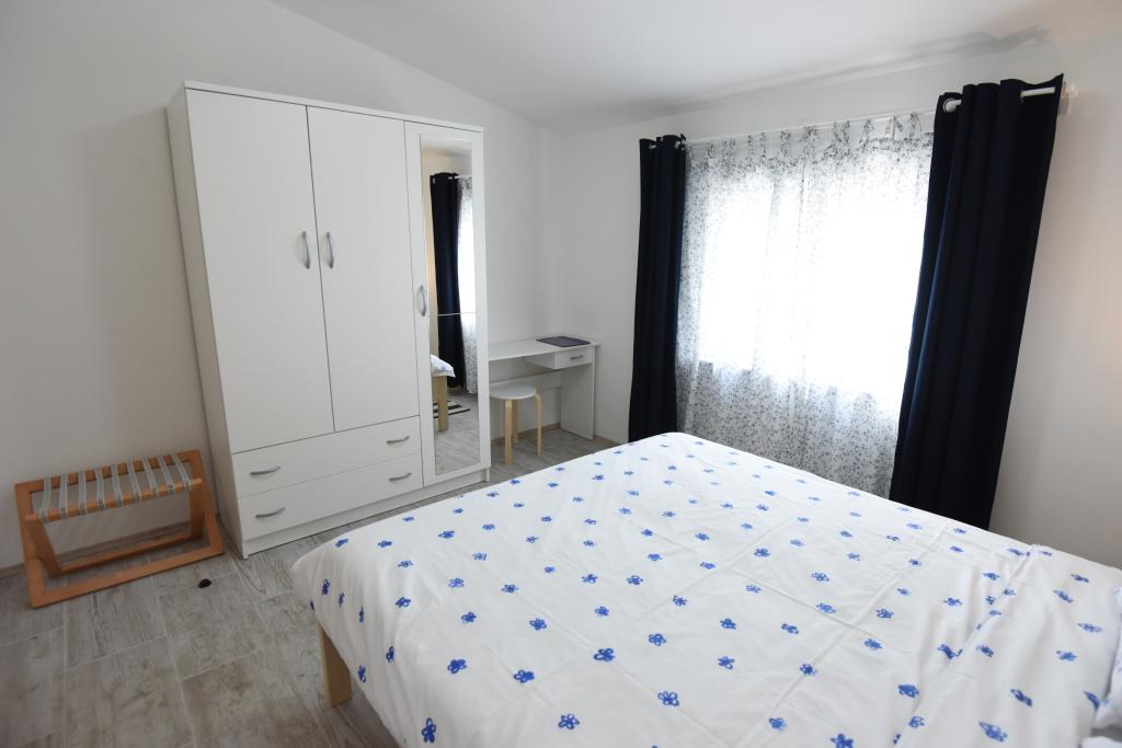 Prostorni, moderno opremljeni apartmaji s pogledom na morje, tik ob plaži Matlovac, so idealno bivanje za družine z otroki. Stavba z lastnim dovozom je sestavljena iz dveh enot, dveh apartmajev po 75 m2 (pritličje in prvo nadstropje) s pokritimi terasami. Apartmaji so opremljeni z vsemi udobji, potrebnimi za prijeten oddih, na voljo pa so tudi otroške posteljice in otroški stolčki. Parkiranje je zagotovljeno na dvorišču, prav tako pa je na voljo uporaba žara in zunanjega tuša. Plaža je tlakovana/prodnata, s peščenim dnom, zaščito pred soncem pa je enostavno najti v borovem gozdu. Ob plaži sta dva kavarna s hitro prehrano, z dodatnimi udobji: trampolinom za otroke in igriščem za odbojko na mivki.