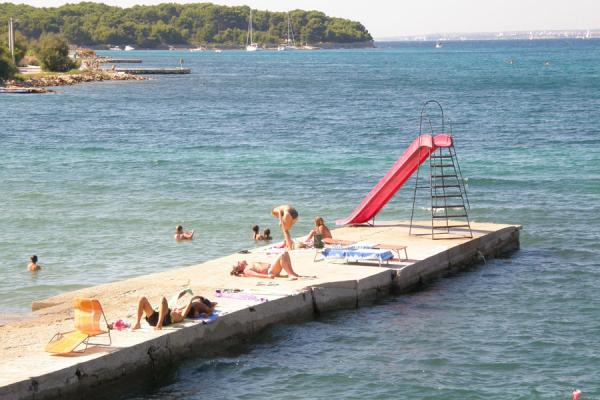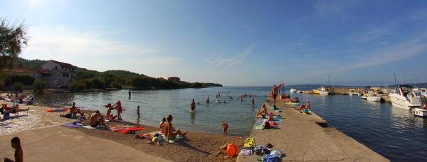 Dva nova stanovanja v majhnem mirnem mestu Banj na otoku Pašmanu se nahaja 120 milijonov od morja. Namesto peščene plaže. Kraj je bogat z grozdje, fige in češnje. Mesto je bogato podzemno pitne vode s tem imenom, Banj. Na hribu Bokolj je cerkvica Marije Loreto, iz katerega seže pogled na Kornatih Long Island, Iž, Rava, Zadar, Split, Trogir, itd ... Glavni šport v bowlingu (buče), sicer pa je otok je idealna za kolesarje in za majhne otroke. Ne preveč gneča. Povezava s kopnim je odlična, deset minut vožnje z avtomobilom do trajekta, bodisi do Zadra in Biograda (petnajstimi leti na dan), vse, kar morate biti hitro na kopnem. Tkdj. organizirani ladje, pojdite na Narodni park Kornati na enodnevne izlete z lepoto narave. Mi kot gostitelji smo vedno pri roki in na ponudnika storitev, kar je lahko.