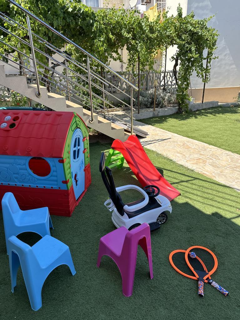 Dodatne ugodnosti za popolno uživanje: otroški kotiček - varen in zabaven prostor za najmlajše, zelena oaza, solarni tuš, SUP deske in kajaki - za aktiven dan na morju in raziskovanje obale, poletna kuhinja z žarom - skupni prostor za kulinarična druženja, pijača dobrodošlice - saj si vaše počitnice zaslužijo topel začetek. Vse je zasnovano tako, da vam zagotovi sproščeno, zabavno in brezskrbno bivanje - ne glede na to, ali se želite sprostiti, raziskovati ali preprosto uživati v obmorski idili.