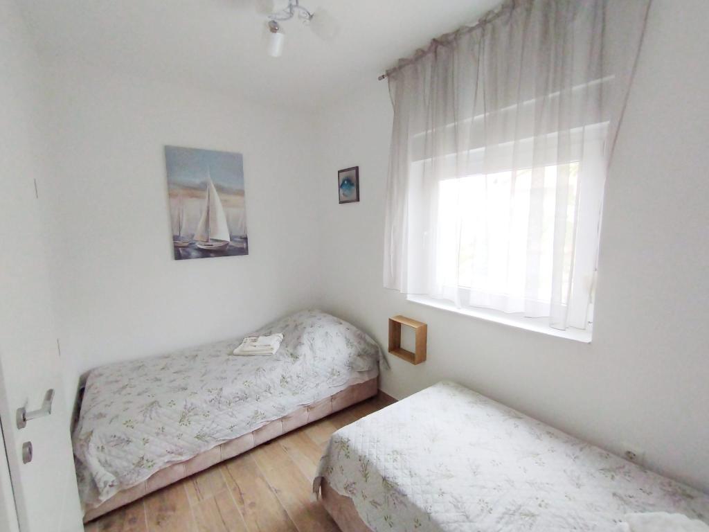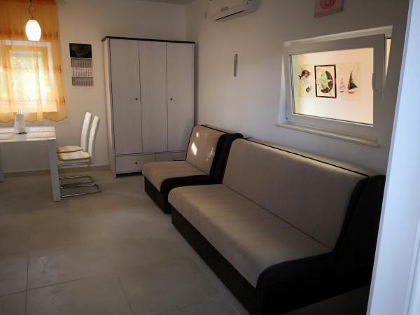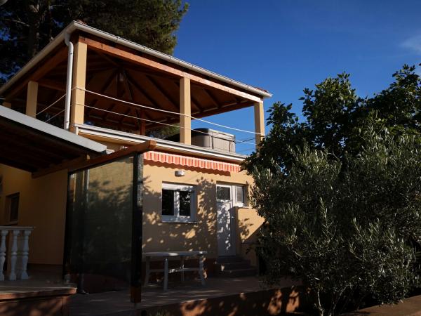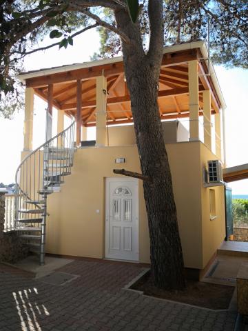 Udobni klimatizirani apartmaji, opremljeni z vsem, kar potrebujete za sproščujoče družinske počitnice ... Uživajte v miru, razgledu s terase in udobju naših apartmajev, borovih gozdovih, pohodniških in kolesarskih poteh ter čudovitih plažah - ne glede na to, ali imate radi peščene, prodnate ali osamljene kamne ... Vse, kar potrebujete, je v 5-10 minutah hoje: trgovina, kavarna, restavracija, pošta, cerkev, plaža, pristanišče ... Zato vas prosimo, da uporabite naš žar: če gre kaj narobe, lahko enostavno skočiš do trgovine, pa če ti riba zagori - restavracija je odlična... pred odhodom pa se lahko osvežiš pod tušem na prostem - da te ne moti, da je kopalnico zasedel tvoj žena ali otroci ;-) Avto lahko ves čas počiva na dvorišču, z njim pa lahko brez gneče raziskujete dva otoka z veliko skritimi lepotami... Kajti miren kraj ne pomeni dolgočasen: vsak kraj ima svoje svoj festival, ali svojo starino, ali svojo naravno lepoto - ki čaka, da jo prepoznaš in si z njo napolniš dušo za vse situacije, v katerih si z nami beži :-)