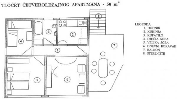 Preberite več Namestitvene enoteČe želite rezervirati apartma v naši hiši, nam sporočite datum prihoda in odhoda, naslov in telefonsko številko. Prav tako je potrebno plačati 30% celotnega zneska računa kot akontacijo - vaša rezervacija postane veljavna po prejemu plačila. Hišni ljubljenčki se doplačajo 5 eur. Apartmaji vam bodo na voljo na dan prihoda od 14. ure dalje, na dan odhoda pa do 10. ure.