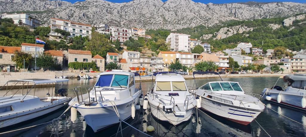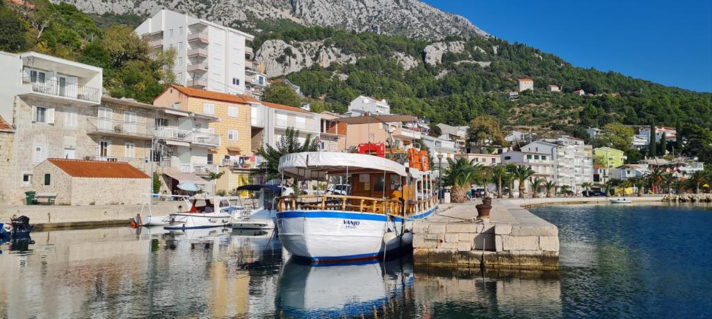 Živogošće se nahaja v južnem delu Makarske riviere ob vznožju Biokova. Sestavljen je iz treh manjših, nepovezanih krajev na obali: Porat - Mala Duba - Blato. Živogošće je bilo naseljeno že od ilirskih in rimskih časov, o čemer pričajo ilirske gomile / grobovi / na vrhu hriba Suzina ter ostanki rustikalnih vil v Mali Dubi in Blatu. Naravna lepota oljčnih nasadov in borovih gozdov, ki se dvigajo nad finimi prodnatimi plažami, 6 km medsebojno povezanih plaž, čisto in neonesnaženo morje, vse to se nahaja ob vznožju visoke gore, vrh Sutvid 1155 m, daje turistom posebno vzdušje in užitek. . Nudimo namestitev v prostornem apartmaju za 4 + 2 osebi, ki se nahaja v družinski kamniti hiši v dalmatinskem stilu, prva vrsta do morja. Stanovanje ima dve etaži in je sestavljeno iz dveh spalnic, dveh kopalnic, dnevne sobe s kuhinjo in prostornega balkona. Skupna površina stanovanja je 90 m2. Apartma ima nepozaben pogled na morje in okoliške otoke, klimo, internet, TV in zavarovano parkirno mesto.