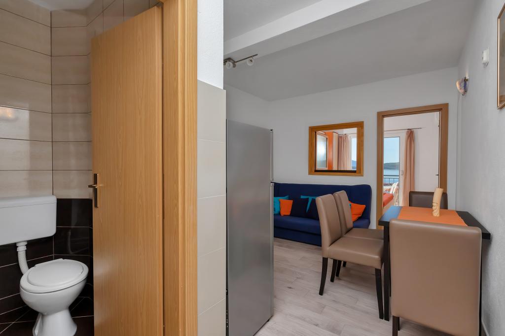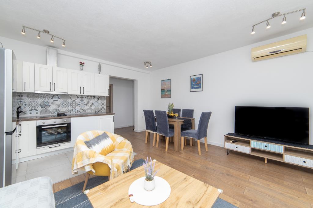 Živeli smo v apartmaju 2+2, ločene sobe, čajna kuhinja. Povsod čisto in oprema v dobrem stanju, brez starega pohištva itd. Cena je po mojem mnenju ugodna, brez dodatnih stroškov za klimo, psa itd... Nočno življenje samo na plaži, popoln mir okoli apartmaja, mi so bili presenečeni. Lastnikov nisva veliko videla, le primopredaja na začetku in potem na koncu, veliko sva se vozila naokoli, uživala. Prednost prodnatih plaž je, da je morje res kristalno čisto. Če bi se kdaj vrnil na to območje, vem, kam naj grem, in mislim, da ne bi iskal nikjer drugje, če bi bilo na voljo. Ker popolnost ne obstaja, bi rad naredil majhno opombo. Posoda na indukcijskem štedilniku se je malo težko segrela, verjetno ni bila narejena direktno za indukcijo, ampak bi se dalo nekaj narediti, samo malo časa je trajalo, ostala posoda je bila v redu.