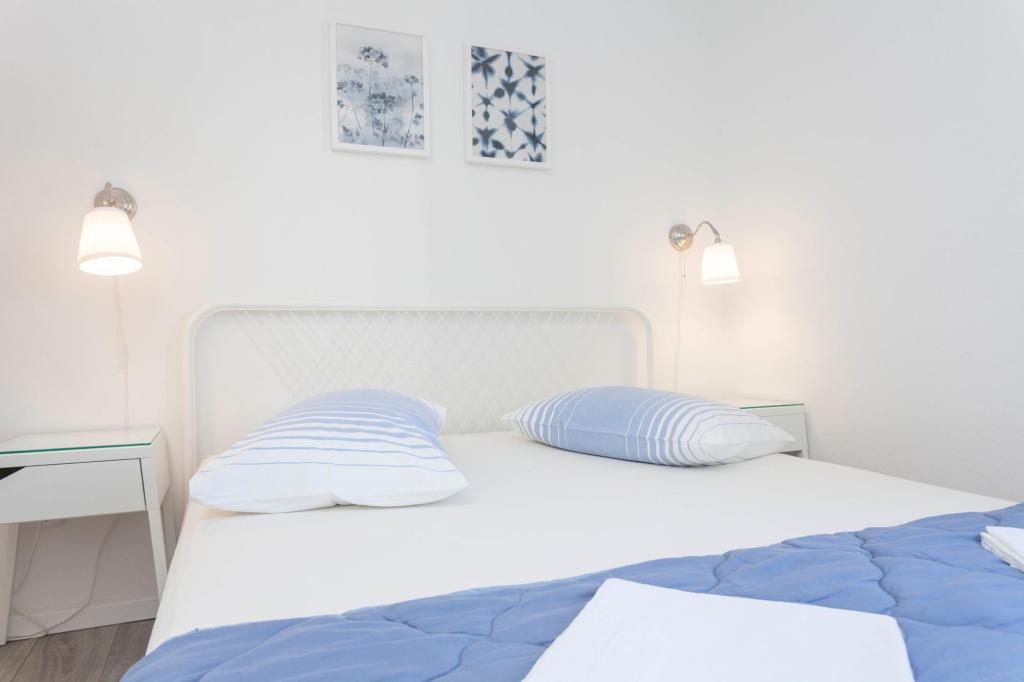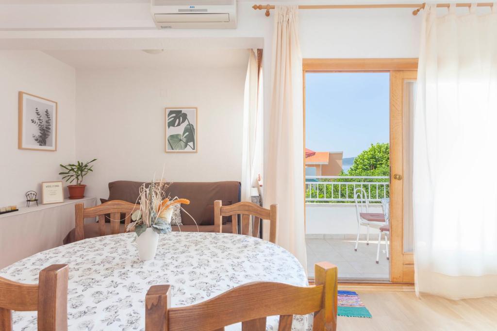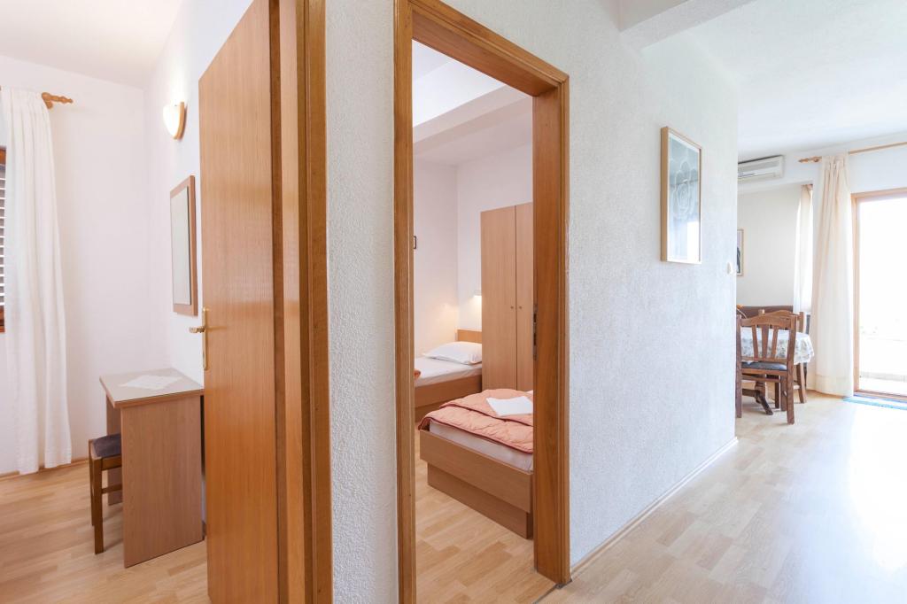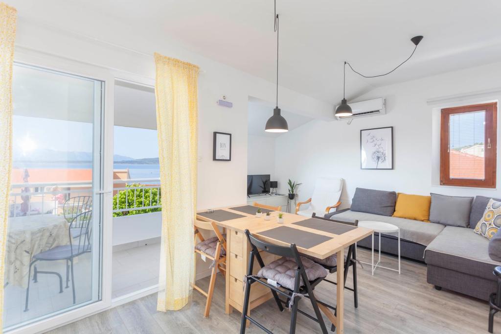 Udobni apartmaji z dvema spalnicama, prostorno kuhinjo in dnevno sobo s pogledom na morje v bližini plaže. Parkirišče vključeno v ceno.
