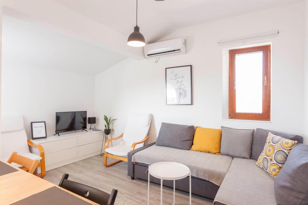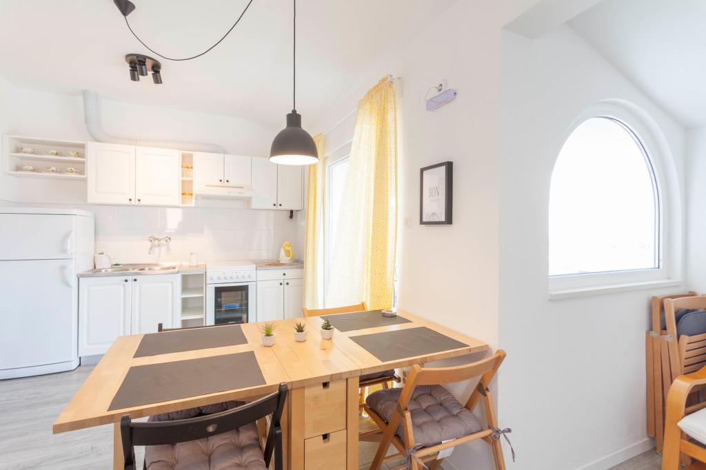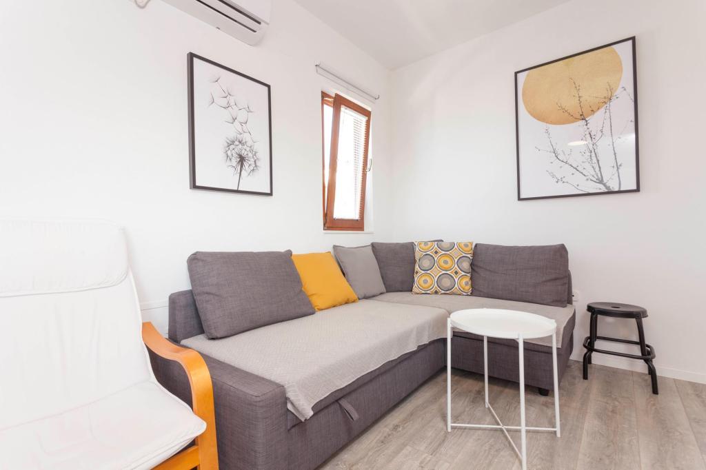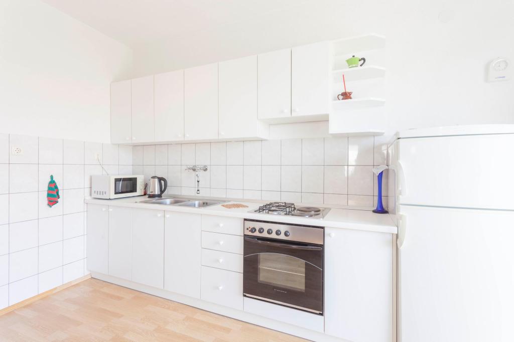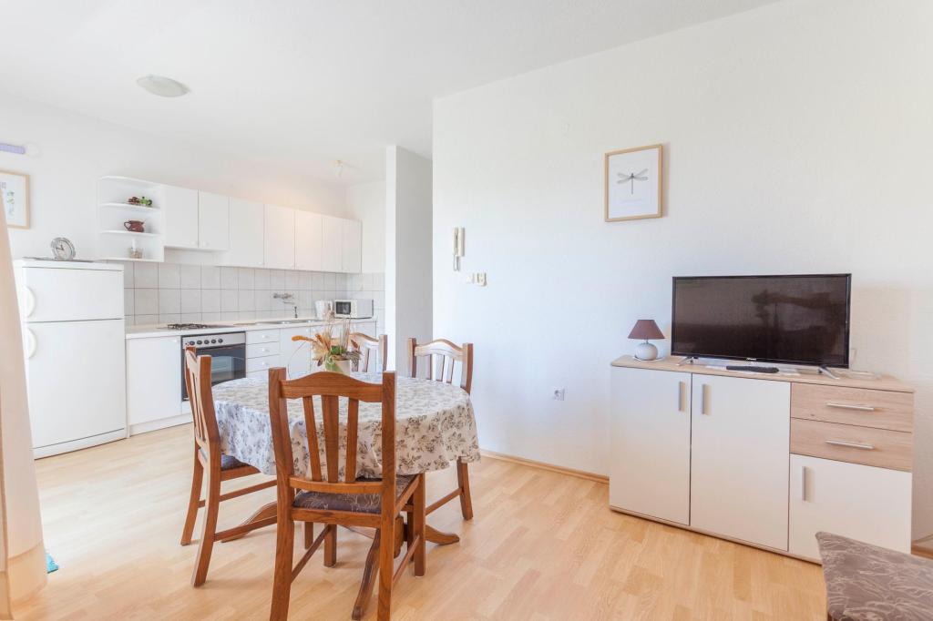 Udobni apartmaji z dvema spalnicama, prostorno kuhinjo in dnevno sobo s pogledom na morje v bližini plaže. Parkirišče vključeno v ceno.