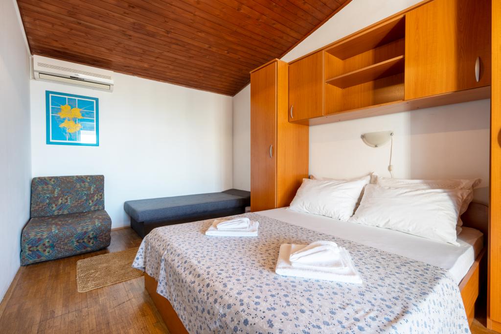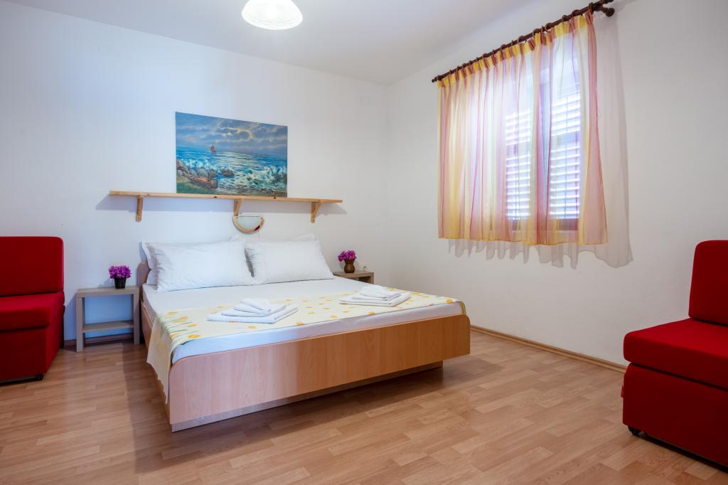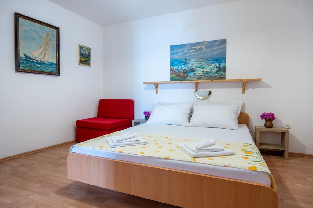 Preberite več Namestitvene enoteRezervacija je potrjena ob plačilu nepovratni depozit v višini 20% celotne cene, ali najmanj 100 EUR na transakcijski račun v roku 1-5 dni (preverite pri nas), potem ko smo odobrili vašo rezervacijo. Preostanek se plača v gotovini ob prihodu. Vse redne cene se nanašajo na bivanje v stanovanju dlje kot 3 dni. Za bivanje 3 noči ali manj, se cene zvišale za 30%. TURISTIČNA TAKSA je vključena. Apartmaji so na voljo za goste s 14, 00 ur na dan prihoda do 10. , 00 ur na dan odhoda.