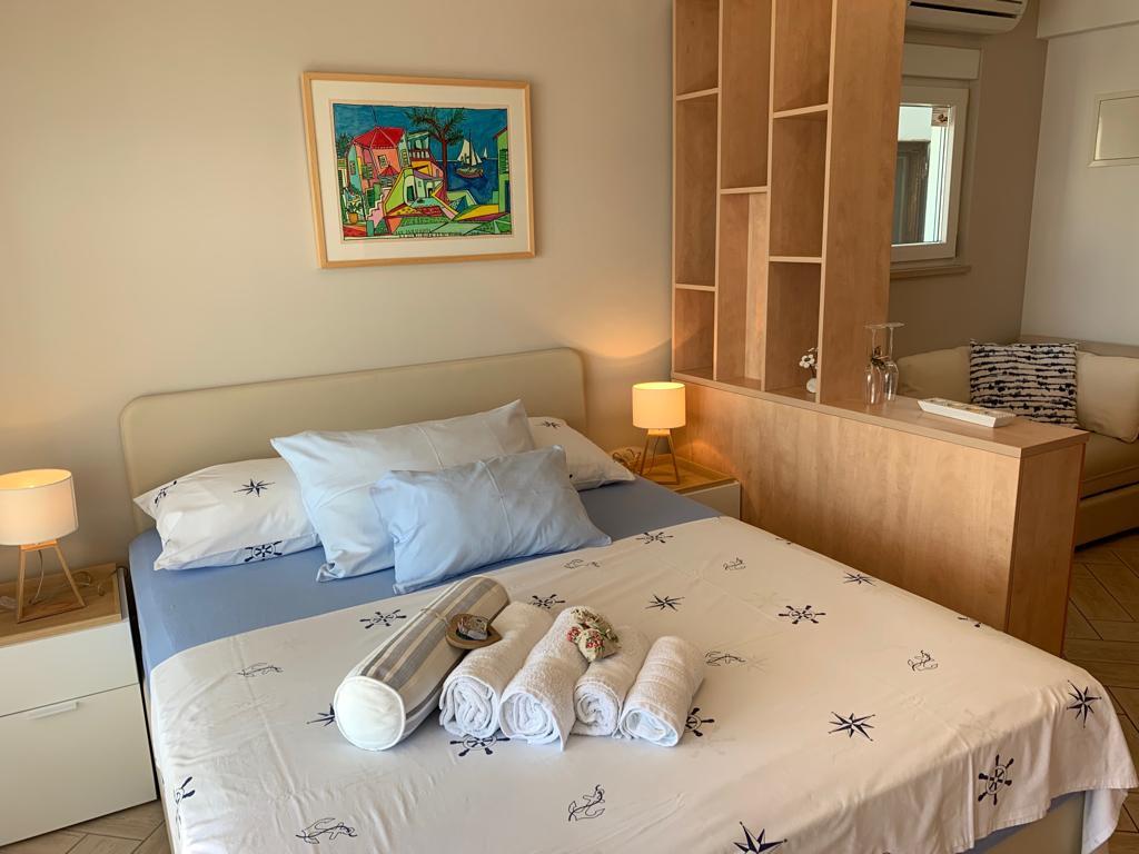 Ponujamo sodobne studio apartmaje, ki se nahajajo neposredno ob morju, vsak v svojem nadstropju. Vsi apartmaji imajo balkon s čudovitim pogledom na morje in okoliške otoke.