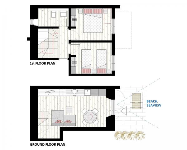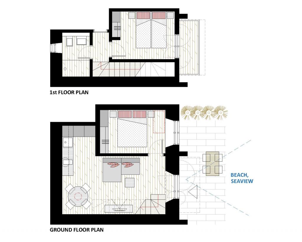 Preživite sproščujoče počitnice v enem od treh moderno urejenih apartmajev (zgrajenih leta 2019), v hiši, ki se nahaja na koncu plaže in vasi Živogošća, za katero se nahajajo le manjše, osamljene samotne plaže. Vsako stanovanje ima ločen dostop in vhod. V opisu vsakega stanovanja si lahko ogledate njegov tloris in slike notranjosti stanovanja. Slike na tej spletni strani prikazujejo pogled na morje in plažo s terase pred hišo in apartmajem. Prvi apartma je studio apartma in se nahaja v drugem nadstropju, njegova površina je približno 26 m2, namenjen je za največ 2 osebi. Drugi in tretji apartma (18066 in 69121) sta v dveh etažah (pritličje in prvo nadstropje), imata površino cca 48 m2 in sta namenjena za največ 4 osebe (starši in dva otroka). Lastno parkirišče se nahaja 40 m nad hišo, na cesti, ki povezuje mesti Živogošće in Igrane. Hiša je od centra Živogošća oddaljena 10 minut hoje