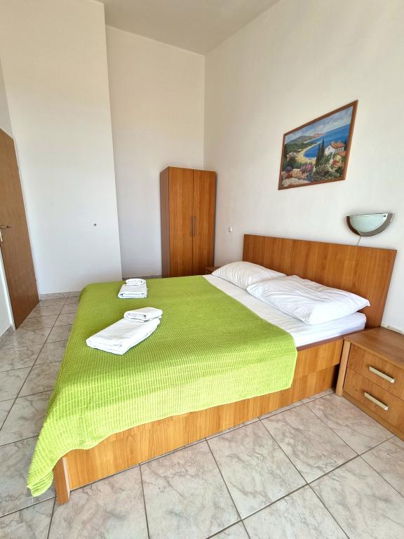 Odlični apartmaji za družinske počitnice! Zelo lep razgled: na eni strani morje, na drugi pa gore. Apartmaji čisti, urejeni in opremljeni z vsem kar potrebujete. 5 minut do mestne plaže, če imate raje bolj intimno plažo, jo boste našli do 10 minut od apartmaja. Upamo, da se bomo v prihodnosti vrnili! Gospa Grle prijazna in gostoljubna! Priporočam !!!