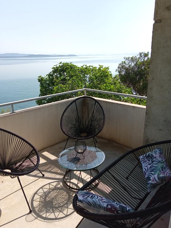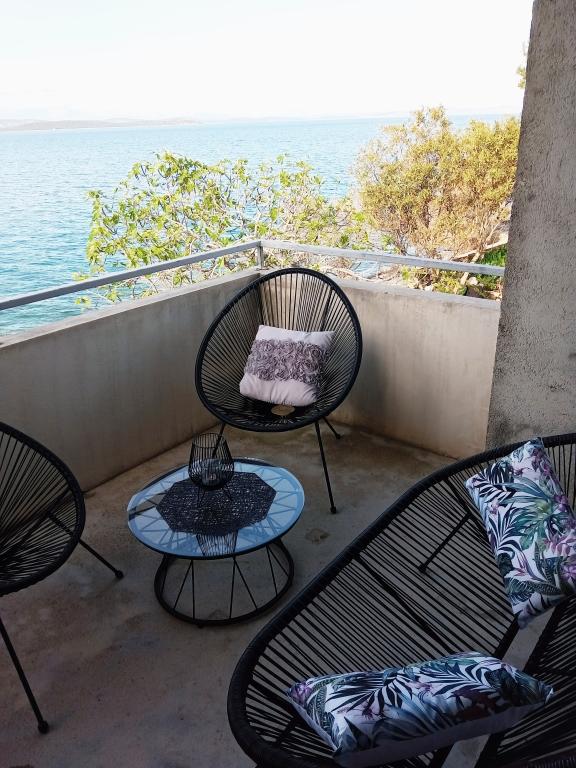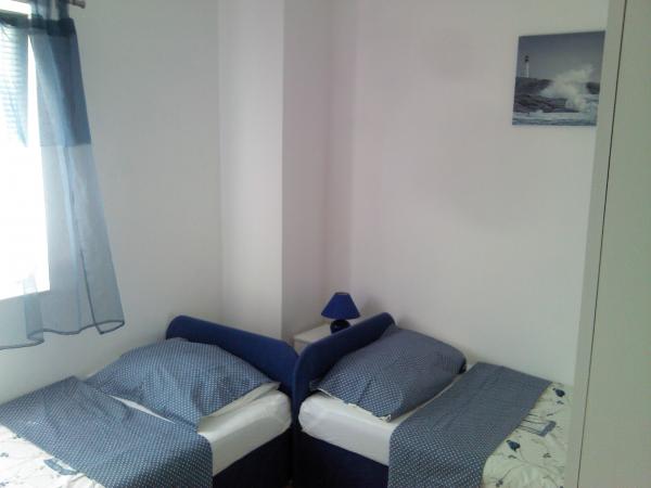 Stanovanje se nahaja ob morju, na plaži. S terase je čudovit pogled na zaliv. Stanovanje je v celoti opremljena (posoda, brisače, posteljnina ...) Ima dve spalnici, dve kopalnici, dnevno sobo in kuhinjo. Gostje imajo parkirni prostor v garaži, ampak če jih je mogoče uporabiti in žar.