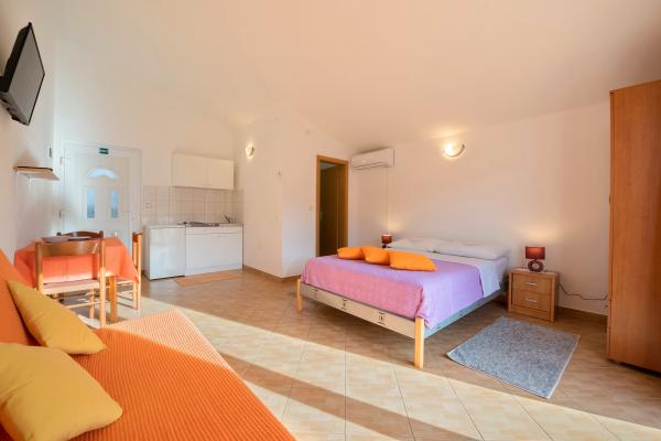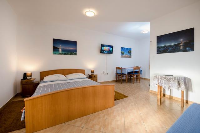 Apartmaji Slavica v Luki na Dugem otoku so novi, moderno urejeni in prostorni studio apartmaji (30-35m2 plus balkon). Primerni so za 2-3 osebe ali za 2 osebi z 1-2 otrokoma. Vsak apartma ima zakonsko posteljo in dodatno ležišče - raztegljiv kavč 135x200cm. . Samo 100 m od centra, trgovine, kavarne, 150 m do najbližje plaže. Mir, tišina, kristalno čisto morje, plaže v neokrnjeni naravi. KLIMA: Klima v vsakem apartmaju. INTERNET: brezplačen WI-FI. Dostop z avtomobilom do hiše je zavarovan, parkirni prostor pa je oddaljen cca 150m, brezplačno, javno parkirišče na obali, v pristanišču. Psi niso dovoljeni.