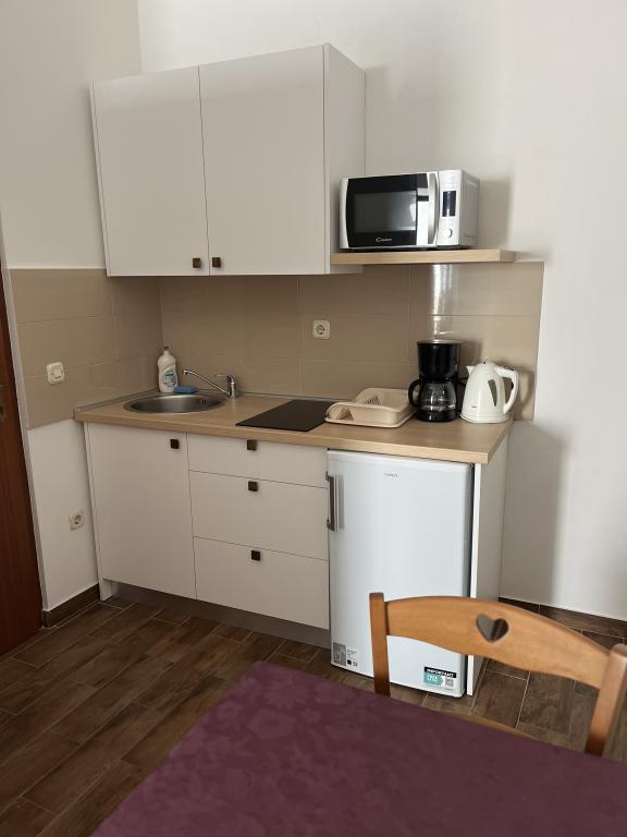 Dobro opremljeni apartmaji v prvi vrsti do morja v mirni vasici Zubovići (Dražica 9). Nepremičnina se nahaja 5 minut hoje od središča vasi, kjer so restavracije, pošta, trgovina, pekarna. Oddaljenost od peščene plaže je 5 minut hoje, pred hišo pa je majhna plaža. Vse namestitvene enote imajo klimatsko napravo, TV, brezplačen dostop do interneta in varovano parkirišče. Na dvorišču je gostom na voljo žar.