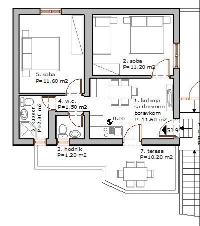 Apartma za dve osebi, možnost dveh dodatnih ležišč (35 m2)