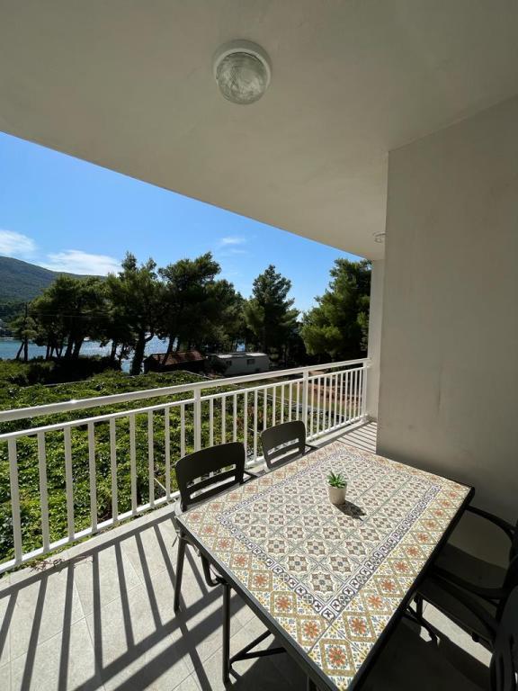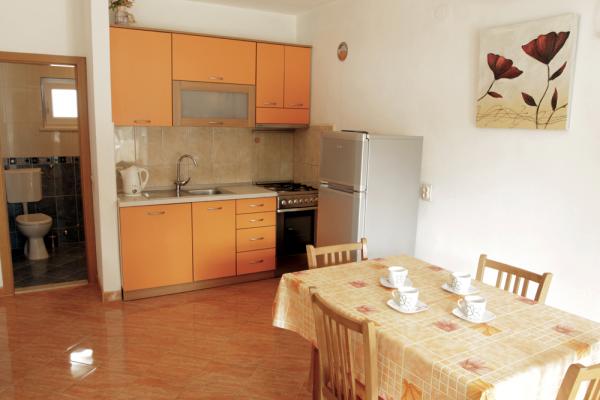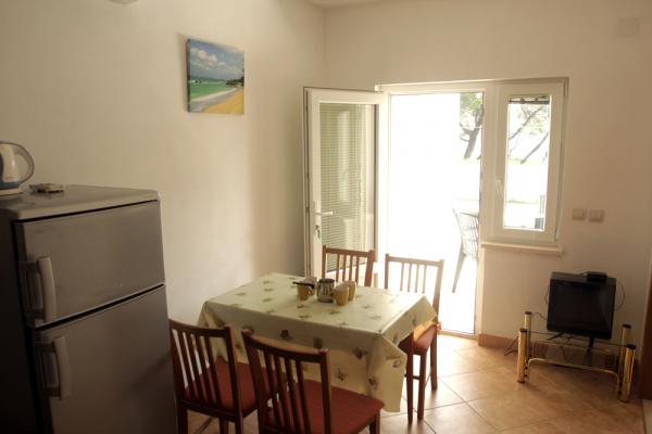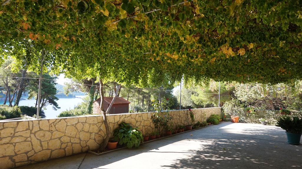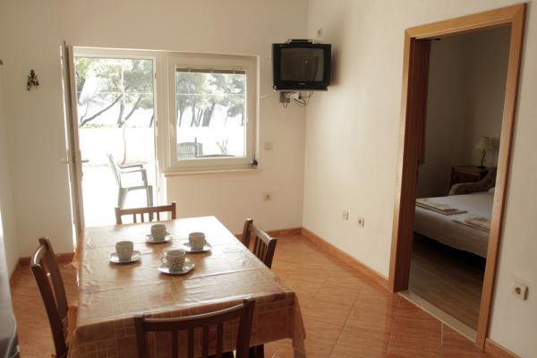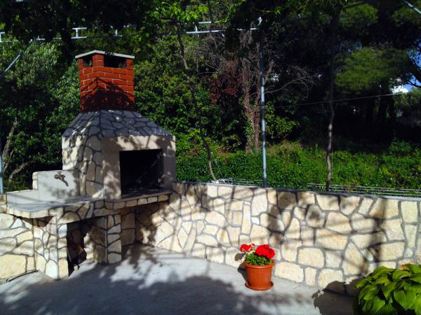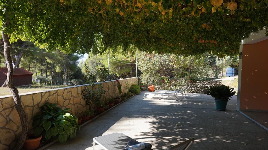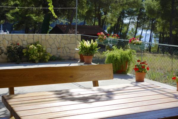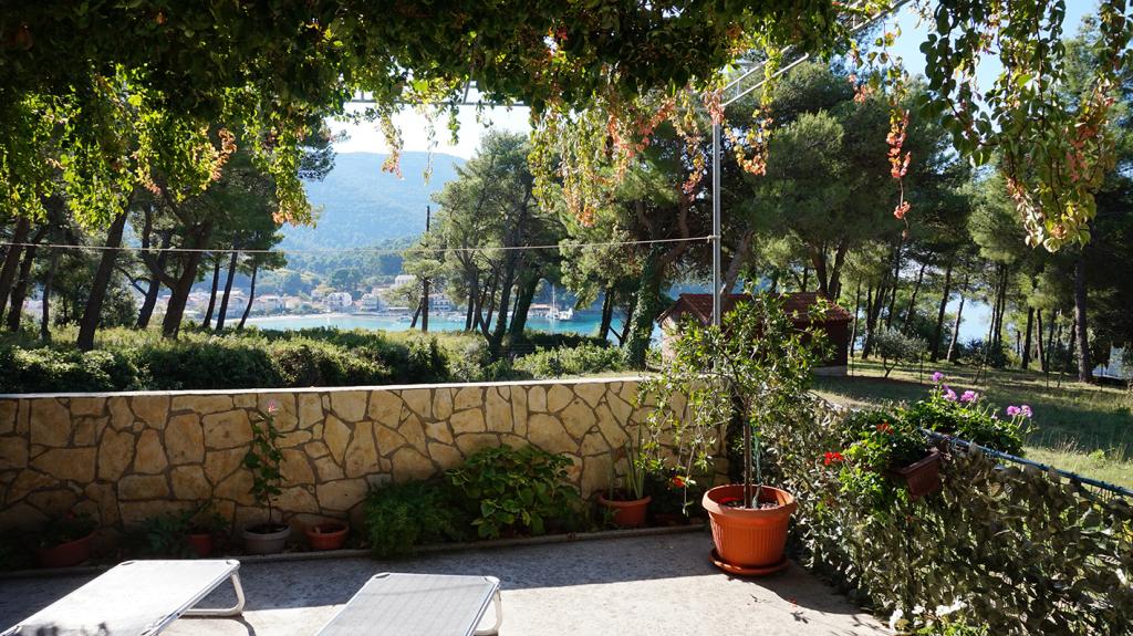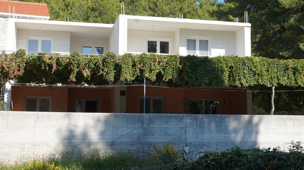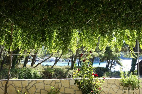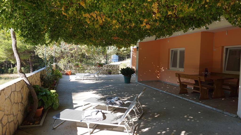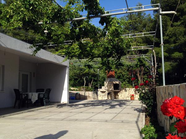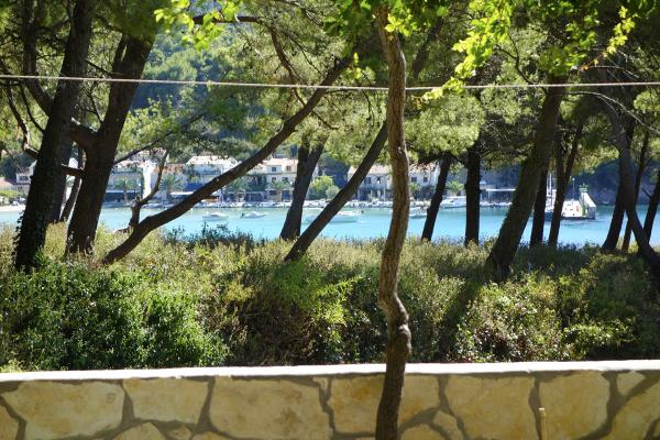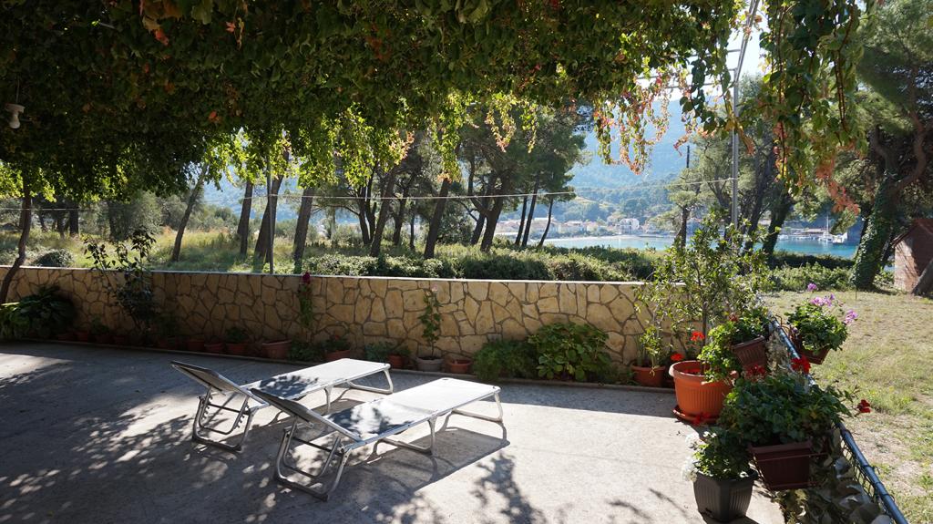 Apartmaji so od glavne plaže oddaljeni 50 m, pod hišo pa je več manjših plaž. Do centra mesta, kjer so trgovina, pošta in bankomat, je 5 minut hoje. Nepremičnina je obdana z borovci z veliko teraso, prekrito z vinsko trto za senco. Ima zasebni žar in zunanji tuš. Nepremičnino je mogoče najeti kot celoto ali ločeno.