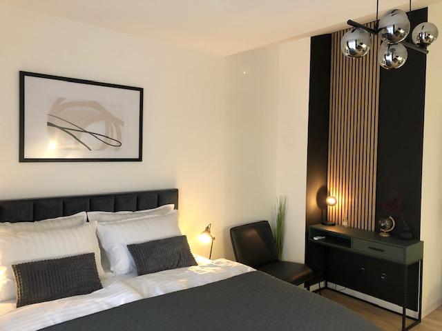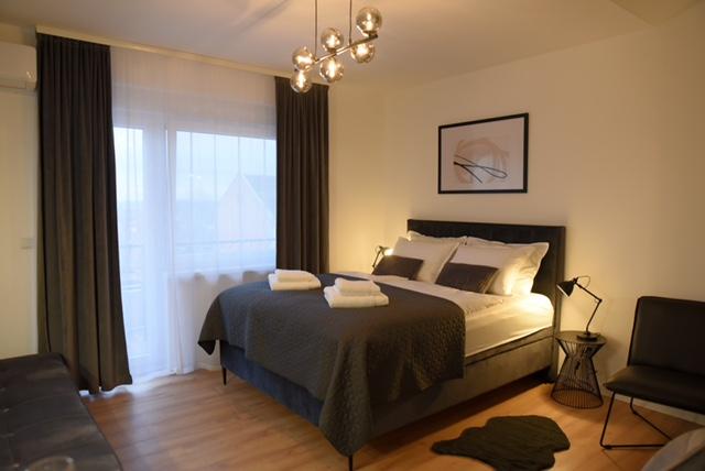 Studio apartma Mia se nahaja v centru Županje. Stanovanje je na novo prenovljeno ter moderno in luksuzno opremljeno. Sestavljen je iz ene sobe z veliko zakonsko posteljo, eno raztegljivo posteljo, sedežno garnituro, TV z ravnim zaslonom, brezplačen WiFi, opremljeno kuhinjo s hladilnikom, mikrovalovno pečico, aparatom za kavo in drugimi aparati, ločeno kopalnico z pralni stroj in kozmetika, hodnik z garderobno omaro ter balkon s pogledom na mesto. Stanovanje se nahaja v stanovanjski stavbi brez dvigala v 4. nadstropju. Pred objektom je javno parkirišče, ki je plačljivo, cena ure je 0,40€.