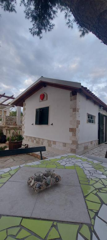 Drvenik Mali je otok, ki se nahaja približno 8 navtičnih milj od mesta Trogir, s katerim je povezan s trajektno linijo (potovanje traja približno 1 uro in obstajajo tri, tj. štiri dnevne linije). Je tipična ribiška vasica, daleč od natrpanega in stresnega načina življenja, in kot taka idealna za uživanje v edinstveni naravi in kristalno čistem morju. Objekt se nahaja na južni strani otoka in ima prelep pogled na odprto morje ter je od morja oddaljen 20 m. Sestavljen je iz dveh delov; hišo, v kateri so kuhinja, spalnica in stranišče (zraven je tudi zunanji tuš, ki uporablja vodo, ogrevano od sonca), ter polkletno stavbo, v kateri je spalnica. Uporablja elektriko iz solarnega sistema, voda pa je deževnica. Kuhinja je opremljena s plinskim štedilnikom in hladilnikom z zamrzovalnikom. Poleg tega ima TV in dostop do interneta. V neposredni bližini je zaliv Vela Rina s čudovito peščeno plažo.