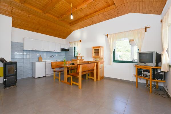 Lepa hiša v Veli Iž, v prelepo pokrajino na parceli 6000m2. Hiša ima 50 m2, z električno energijo z generatorjem, vodo s kopalnico, z lepo kuhinjo, dve spalnici, ena z zakonsko posteljo in sobo s pogradom. Hiša ima kopalnico s tušem, teraso s pogledom na morje. Hiša je tik ob morju, tako da zasebna plaža je le 10 metrov. Hiša je od središča vasi, ki se nahaja 2, 5 km. Lega hiše je v lepem sredozemskem okolju, okoli hiše je oljčni nasad in se počutite, kot da ste v malem raju. Idealno za preživljanje sproščujoče počitnice stran od zanosom mesta. To je zelo tih, idealen za ljudi vseh starosti in za vse starosti. Občutiti vonj morja in milijonov zvezdo na nebu samo še biti tam. Hiša se lahko pripeljete z avtomobilom na pol poti, in na pol poti peš. Obstaja možnost, da se gostje prevažajo z ladjo, ki je od Veli Iž leži samo eno uro.