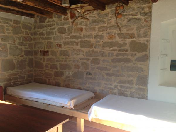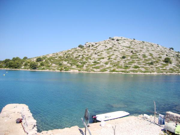 Apartma v pritličju - 60 m2 (glavni prostor s kuhinjo z jedilnico in dvema ležiščema, soba z zakonsko posteljo, WC, terasa z zunanjo jedilno mizo - kapaciteta: 4 osebe) Hiša ima kuhinja, soba in WC, elektrika (iz sončne energije - polnite lahko mobilne telefone in prenosnike) in pitna voda (iz deževnice). V ceno je vključen čoln za kopanje z motorjem (4m; 6hp). Prevoz na otok z ladjo traja 2 uri (čoln in skiper za prevoz sta brezplačna, če pridete in odidete NEDELJA, gost plača samo stroške goriva cca. 200 €) Uživajte v nacionalnem parku Kornati, obiščite klife, potapljajte se , opazujte živali in raziskujte nacionalni park - doživite svoj dopust drugače!