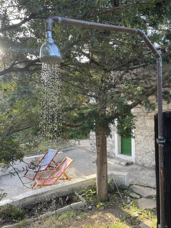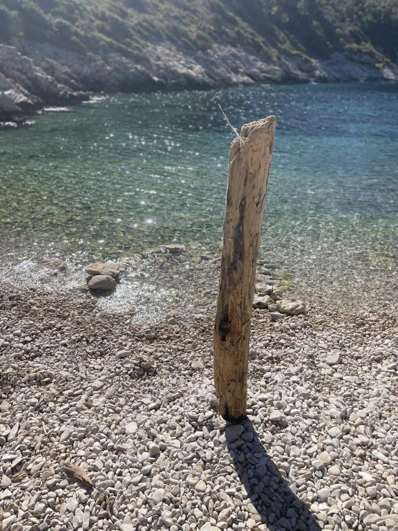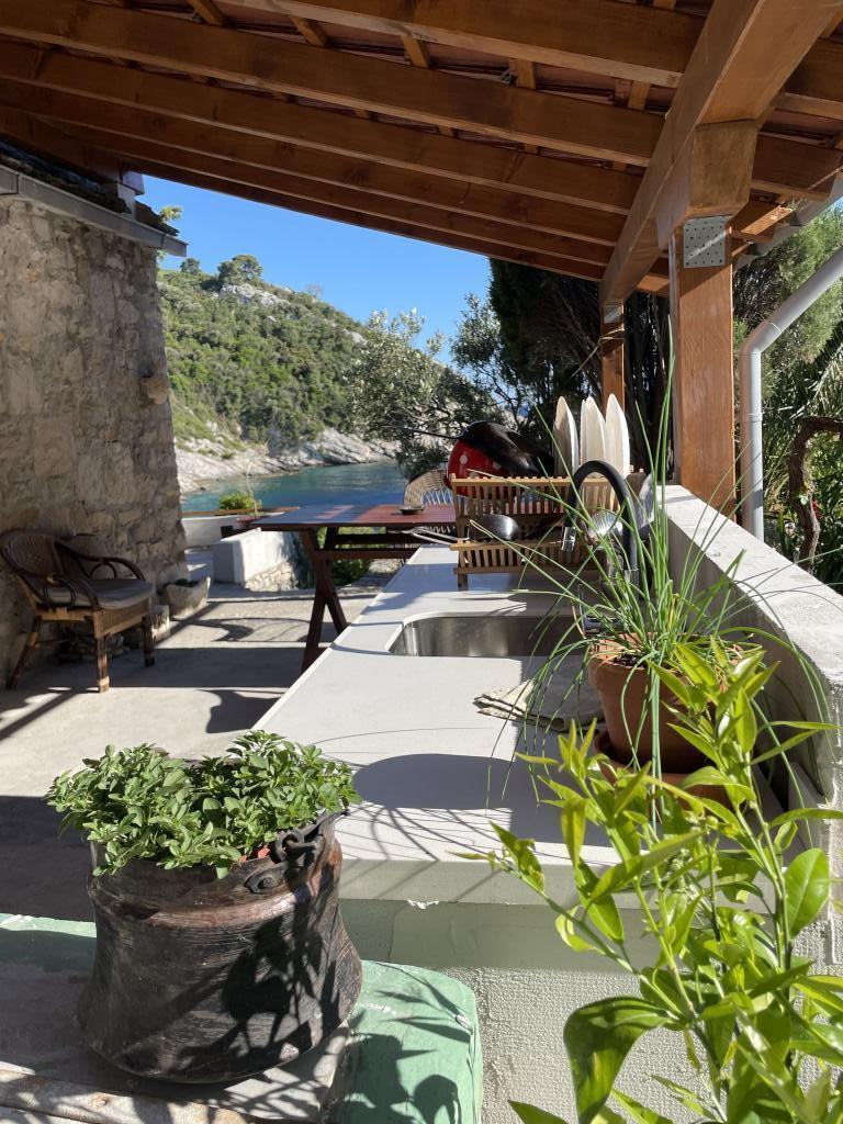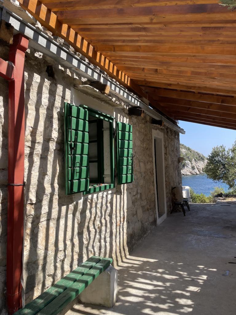 Hiša se nahaja v mirnem zalivu s prodnato plažo, obdana z nedotaknjeno, idilično naravo in vonji avtohtonih sredozemskih aromatičnih zelišč. Do nje ni ceste – avto je parkiran približno 300 metrov stran, od parkirišča do hiše pa je deset minut hoje po kozji poti. Hiša ima 4 postelje. Elektrika se proizvaja s sončnimi paneli in je dovolj za hladilnik, razsvetljavo ter polnjenje mobilnih telefonov, prenosnikov in drugih običajnih naprav. Voda prihaja iz rezervoarja in jo lahko uporabljate za kuhanje in tuširanje. Ob prihodu vas v hiši čaka nekaj litrov pitne vode, preostanek pa lahko enostavno kupite v trgovinah na otoku. Kuhinja je opremljena s plinskim štedilnikom in kaminom, ki ga je mogoče uporabiti tudi za peko na žaru. Najbolj pa boste uživali v kuhanju v zunanji kuhinji s pogledom na morje in okoliško naravo. Ker je to edina hiša v zalivu, naši gostje tukaj uživajo v samoti in miru, medtem ko so od vseh ugodnosti in urbanega vzdušja Splita oddaljeni le približno 50 minut vožnje s trajektom.