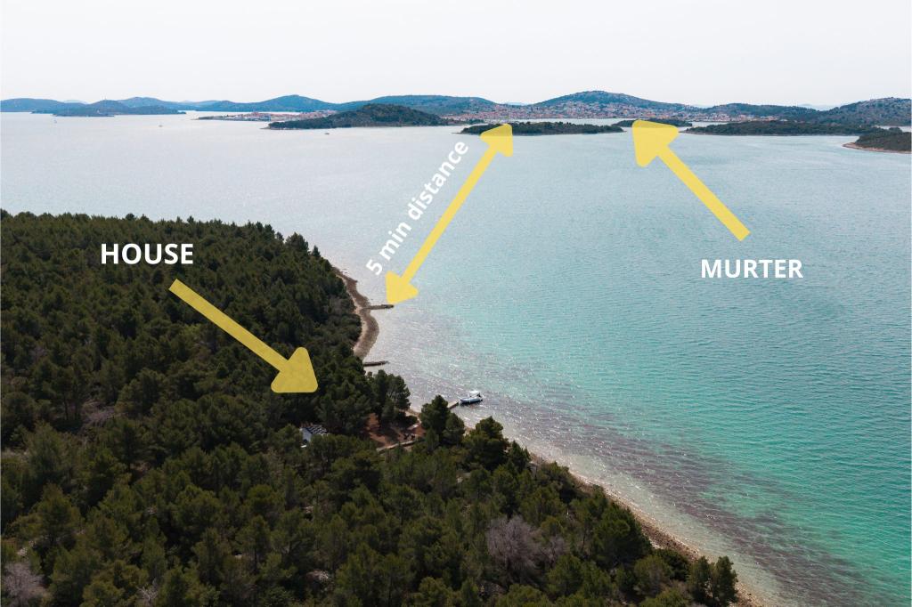 Obmorska hiša »Una« se nahaja v popolni izolaciji, obdana z zelenjem in nedotaknjeno naravo, zaradi česar je idealen kraj za pobeg od vsakdanjega stresa. Od otoka Murterja je oddaljena le 5 minut vožnje z gliserjem. Tukaj lahko uživate v tišini, naravni senci in morju, ki je oddaljeno le nekaj korakov. Najbližji objekt je oddaljen 70 metrov in ni v uporabi, kar dodatno zagotavlja popoln mir in zasebnost. To je idealen kraj za sprostitev in povezovanje z naravo, stran od množice in hrupa. Do hiše je mogoče priti le z ladjo, prevoz pa je vključen v ceno. Prihod z avtomobilom ni mogoč - vozilo je treba pustiti na našem parkirišču v Murterju.