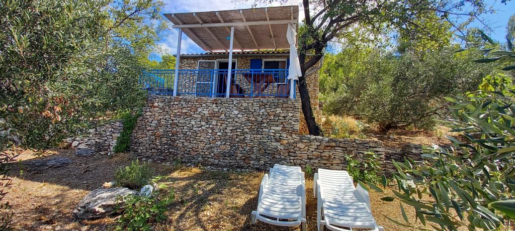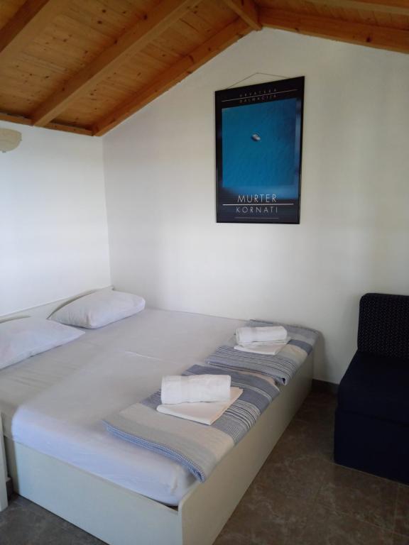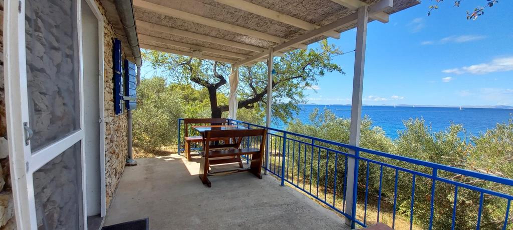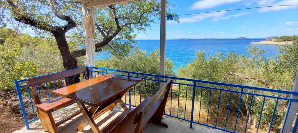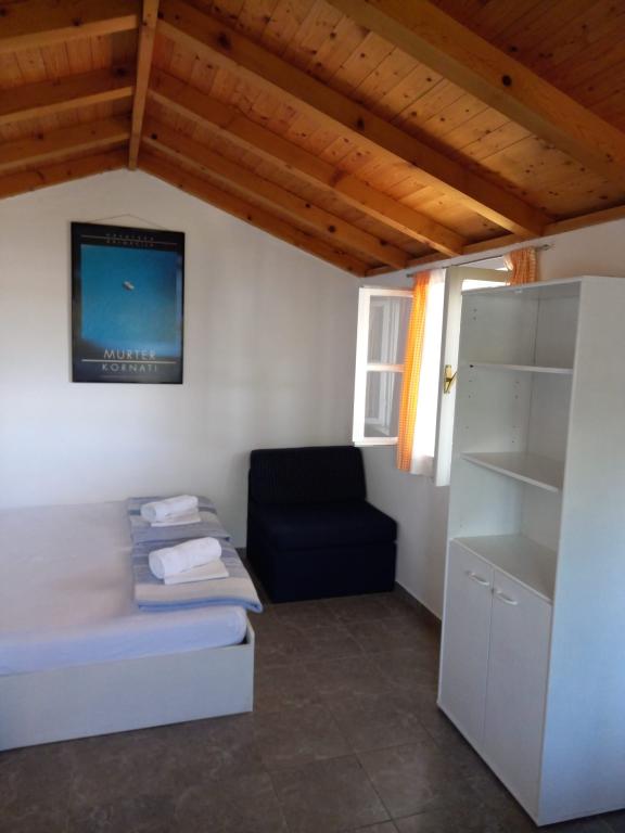 Ribiška hiša s čudovitim pogledom na morje se nahaja na odlični lokaciji le 30 metrov od morja. Ribiška hiša ima solarne kolektorje iz katerih se pridobiva električna energija (lahko tudi manjše naprave). Voda je dobra za tuširanje (iz vodovoda ali deževnica), ogrevana s soncem. Vode je dovolj, če jo porabljamo racionalno. Ribiška hiša ima površino 25 m2. Studio lahko sprejme 2 odrasli osebi. Ima dnevno sobo. Ima dodatno ležišče za eno osebo. Ima kopalnico s prho. Površina balkona/terase je 15 m2. Parkirišče je zagotovljeno in vključeno v ceno. Na voljo je zunanji žar, ki se lahko uporablja. Ribiška hiša je od centra mesta oddaljena približno 1500 m in 30 m od morja oziroma prve plaže v Murterju. Hišni ljubljenčki so dovoljeni za doplačilo. Apartma je na odlični lokaciji ob morju, s terase pa lahko uživate v pogledu na Kornate in čudovite sončne zahode. Od zaliva in plaže "Čigrađa" je oddaljen le 5 minut hoje. Središče mesta je oddaljeno 30 minut hoje. Prva trgovina je oddaljena 20 minut hoje. Brezplačno in varovano parkirišče.