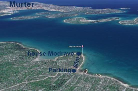 Objekt se nahaja 10 min od središča Murterja in ima svoj privez za čoln. Do objekta je mogoče priti s čolnom in z avtomobilom samo z vožnjo z makadamom. Varno parkiranje v Murterju je za goste zagotovljeno brezplačno. Prav tako je zagotovljen brezplačen prevoz za dom. Hiša se nahaja na obali 10 metrov od morja. Objekt ima 240V električne energije iz sončne energije. Voda je iz rezervoarja in jo je treba racionalno porabiti. Hiša je primerna za kolesarje, saj je blizu kolesarskih poti. Hiša je v osamljenosti in je idealna za počitek in mir.