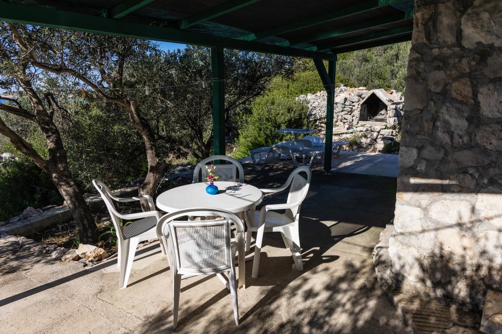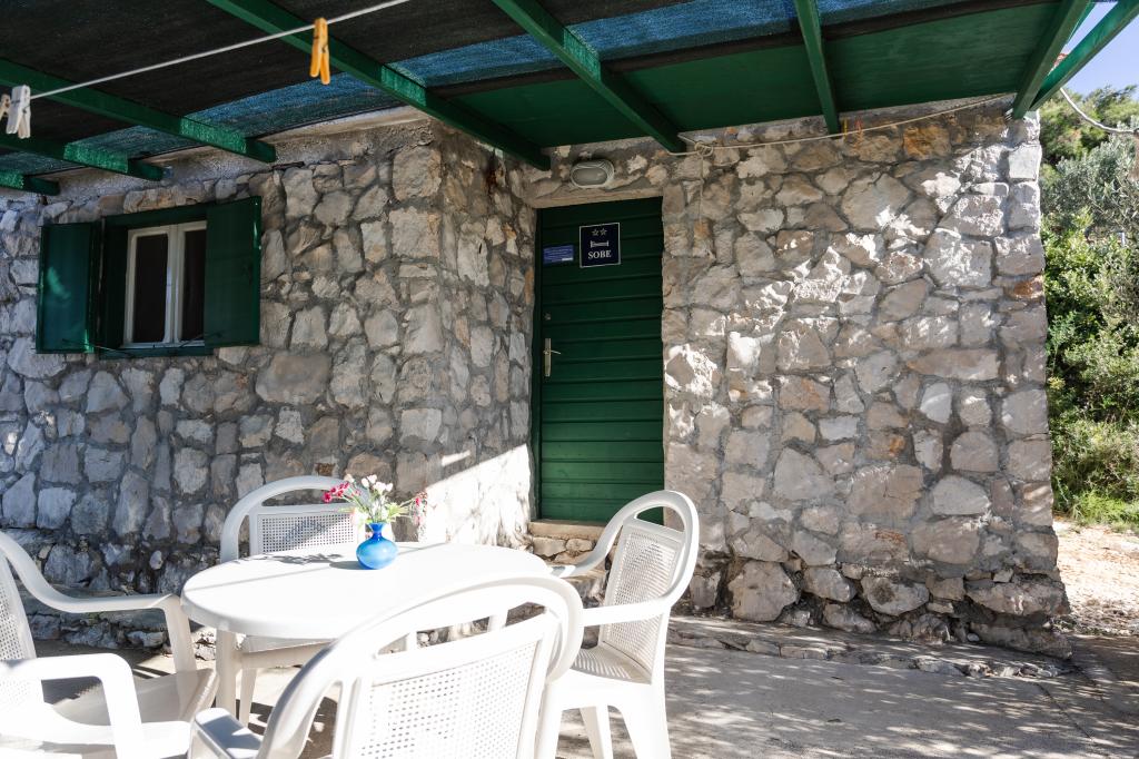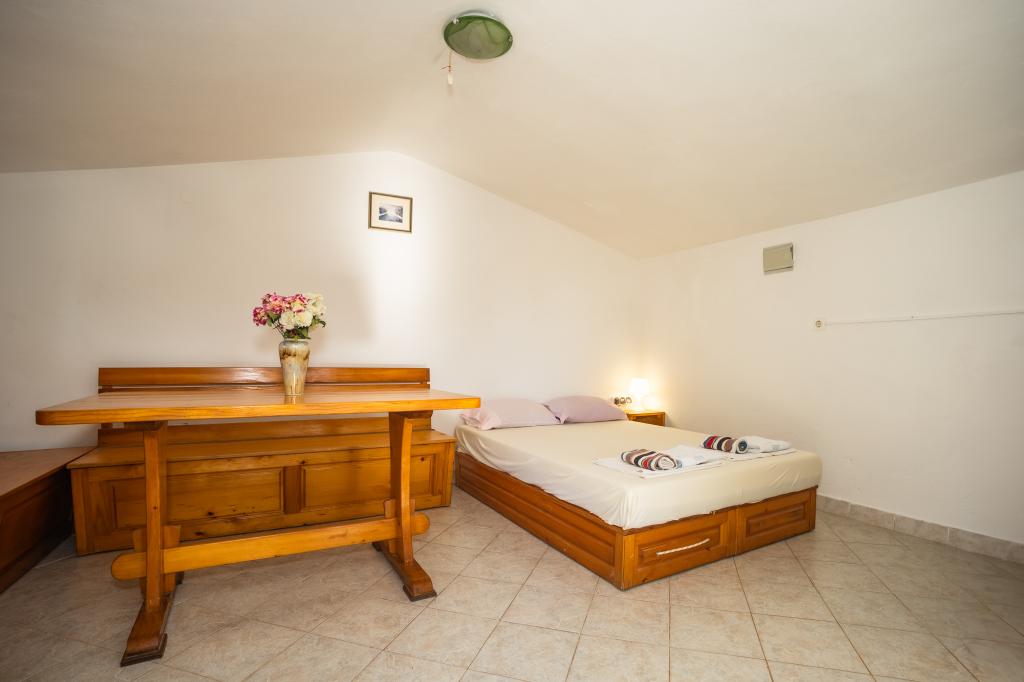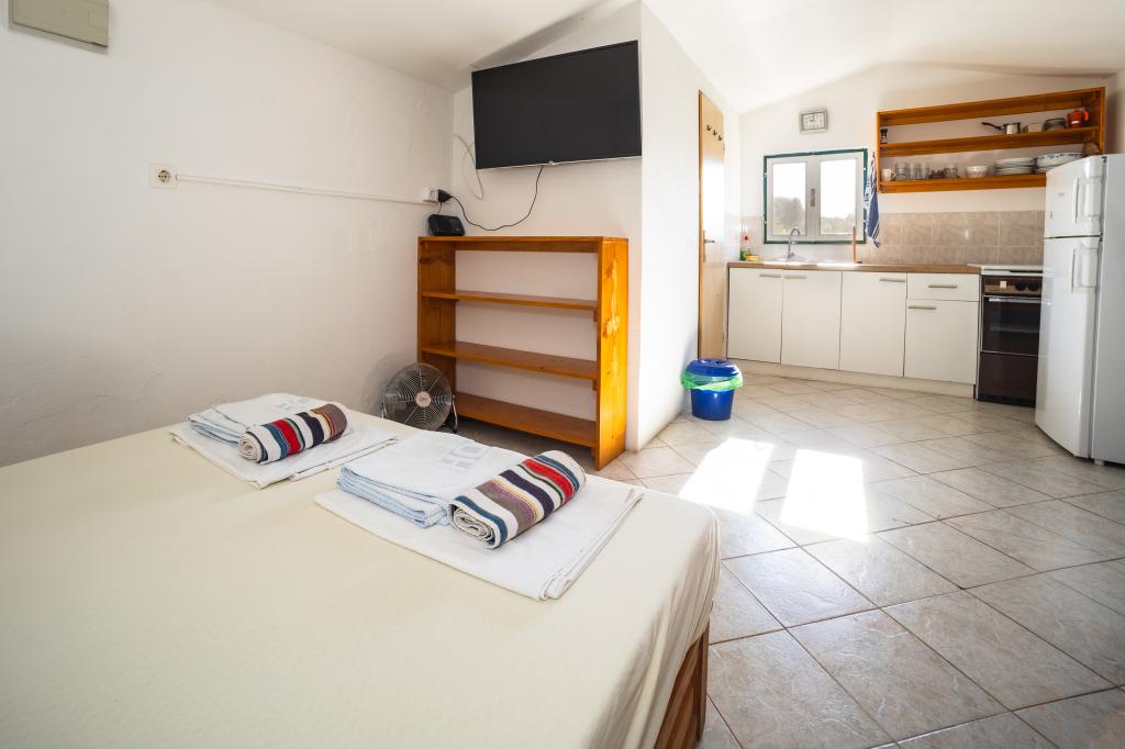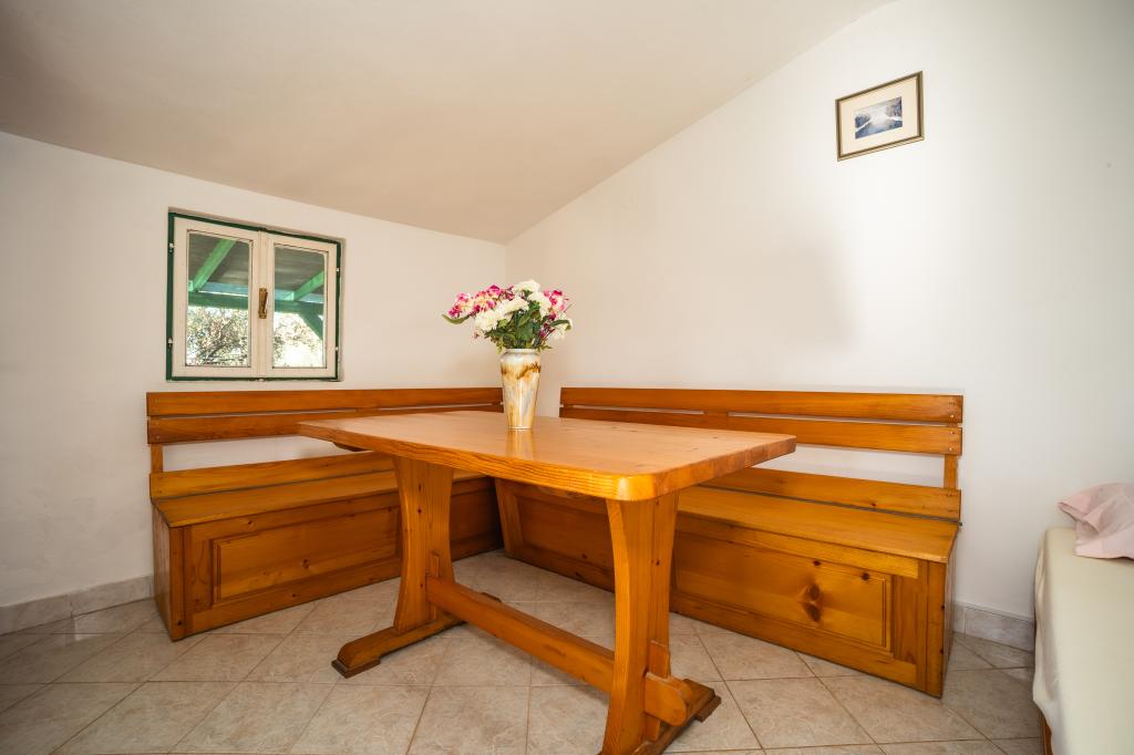 Ribiška hiša s čudovitim pogledom na morje se nahaja na odlični lokaciji le 30 metrov od morja na čudoviti murterski plaži Podvrška. Ribiška hiša ima solarne kolektorje iz katerih se proizvaja elektrika (lahko tudi manjše naprave). Hladilnik in štedilnik sta na plin. Voda je dobra za tuširanje (iz pipe ali deževnica), ogrevana s soncem. Vode je dovolj, če jo porabljamo racionalno. Ribiška hiša ima površino 25 m2. Ima eno spalnico za 2 odrasli osebi. Ima dnevno sobo. Ima kopalnico s prho. Površina balkona/terase je 30 m2. Parkirišče je zagotovljeno in vključeno v ceno. Na voljo je zunanji žar, ki se lahko uporablja. Ribiška hiša je oddaljena cca 1000 m. Od centra mesta oddaljena 30 m. od morja ali prve plaže v Murterju. Hišni ljubljenčki so dovoljeni za doplačilo.