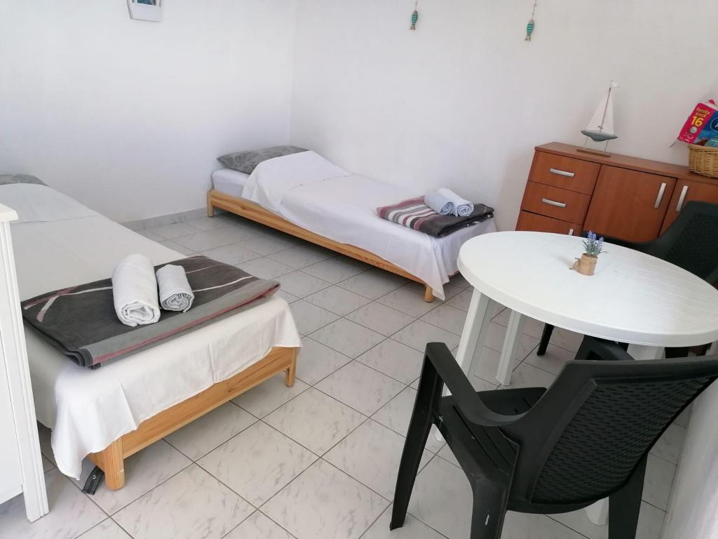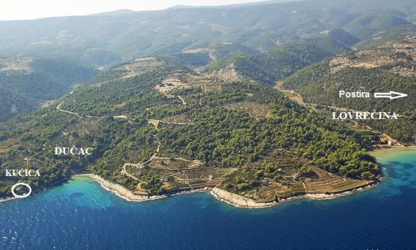 Razpoložljivi termini: 16.-23.8.2025. in od 11.9. Hiša se nahaja v uvali Dučac 6 km od Postire na otoku Braču in je idealna za ljubitelje robinzonskega turizma, ki cenijo predvsem naravo in tišino. V uvali ni vodovoda, imamo pa cisterno za pomivanje posode in zunanji tuš ter sončne celice, ki zadostujejo za razsvetljavo in polnjenje mobilnih telefonov. Pitno vodo je treba kupiti. Dober telefonski signal je. Hiša ima 2 sobi: ena ima zakonsko posteljo, druga, povezana s kuhinjsko nišo, pa ima 2 enojni postelji. Na voljo je tudi dodatno ležišče. Stranišče je v ločeni hiši (stranišče in zalivalka). Hiša ima hladilnik, plinski štedilnik, kamin/žar na dvorišču, kuhinjski pribor, pribor in posteljnino. Do same hiše se lahko pripeljete z avtomobilom, cesta je nekoliko strma, a na novo asfaltirana, brez lukenj itd. Sprehodite se lahko do bližnje uvale Lovrečine, ki je bila razglašena za najlepšo plažo na Jadranu in ima tudi restavracijo. Do zaliva vodi pot ob morju.