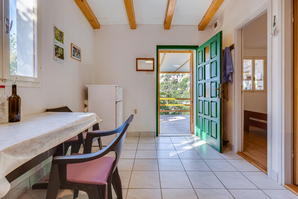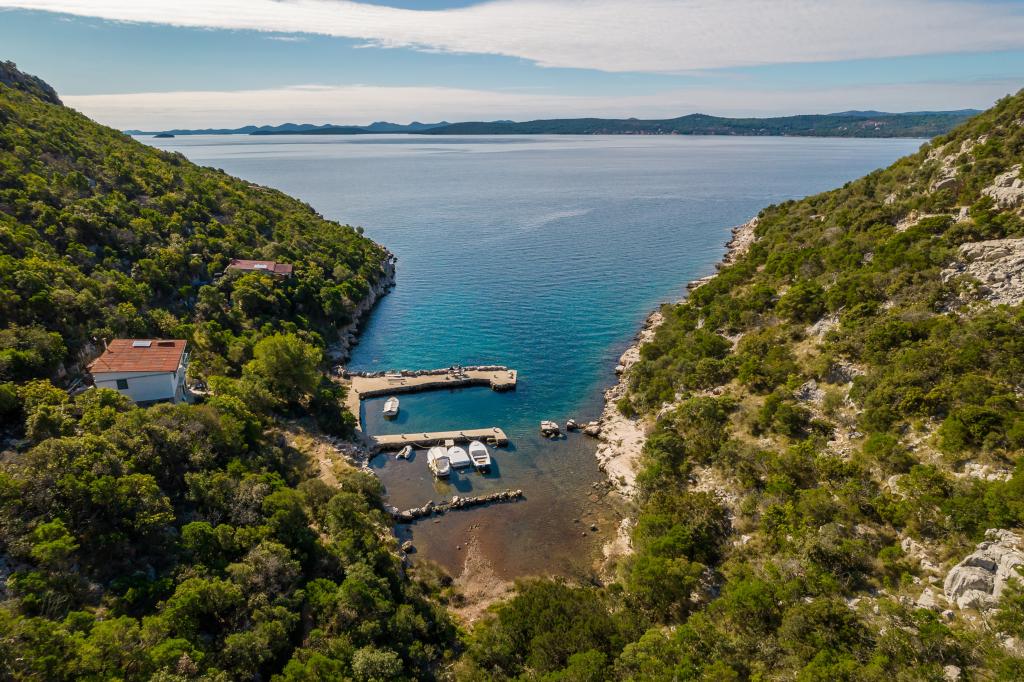Hiša se nahaja na otoku Ugljan v majhnem zaščitenem zalivu. Ima teraso s pogledom proti jugozahodu in otoku Ižu. Do hiše vodi cesta, na koncu bele ceste parkirate avto in potem imate še 10 minut hoje po poti. Hiša ima vodo in alternativni vir energije, in sicer ima solarno elektriko na 12 V. Možnost polnjenja malih porabnikov kot so mobilni telefoni itd. Hiša je idealna za bivanje 2 oseb. Lega hiše je takšna, da se počutite popolnoma svobodni v naravi in uživate v mirnem dopustu. Če imate čoln ali gliser, imate tudi privez in si lahko organizirate bivanje po želji.