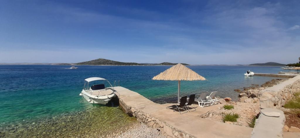 Robinson House Dupin se nahaja na otoku Pašman. Objekt se nahaja 15 metrov od morja s čudovitim razgledom na Kornatski arhipelag. Hiša ima 3 spalnice z zakonskimi posteljami. Hiša lahko sprejme do 6 oseb. Kuhinja je opremljena s posodo, jedilnim priborom, kuhalno ploščo in pomivalnim strojem. Hladilnik ima prostornino 220 litrov in prostornino 109 litrov. Rezervoar za vodo ima prostornino 16.000 litrov. Elektrika 220 V je na sončno energijo, vendar ni mogoče uporabljati drugih gospodinjskih aparatov, razen polnilnikov za mobilne telefone in razsvetljave. V kuhinji in kopalnici je napeljana topla in hladna voda. Zunanji tuš opremljen s črnim bojlerjem, ki ga ogreva sonce. Tukaj je treba z vodo in elektriko ravnati varčno. Voda je pitna, ko je rezervoar napolnjen, vendar ker poleti stoji v rezervoarju pri visokih temperaturah, jo je treba pred uporabo za pitje najprej prevreti. Hiša je dostopna z avtomobilom približno 500 m stran, parkiranje je brezplačno.