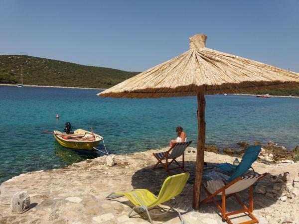 Ponovno smo preživeli čudovit čas v tej hiši. Če iščete miren in sproščujoč čas iz turizma, vendar se morate še vedno vrniti v civilizacijo (30 minut vožnje), dobra izbira. Le nekaj korakov od morja, enostaven dostop do vode, lepo "Hawaian style dežnik " vam daje senco med bivanjem na morju. In če želite hladno pijačo uživati v hladilniku, potrebujete samo 30 sekund, da ga vzamete iz hladilnika. Priporočam, da se s prihodom lastnika strinjate z naslednjim zalivom (Zizanj) in uporabite krajevno restavracijsko pomol, da premaknete vrečke iz avtomobila z ladjo lastnika in uporabite ta način, da pridete od najbližje tle do hiše. Pomeni, da boste morali nositi vrečke v rokah le 50m. Velika prednost prhanja na prostem - vam ne bo treba uporabljati zaprtega prostora, lepo se prhljati zunaj in gledati morje. 2. priporočilo - uporabljajte plinski hladilnik samo v nasprotnem primeru se borite z električno energijo, vendar je dovolj velika, da shranite vse potrebe po hrani, ki jih je treba hladiti. Lastnik je zelo prijazen in uporaben. Če vam je všeč dejavnosti - prinesite nekaj podobnega (sup krovu) ali gorsko kolo za lepo jutranjo vožnjo skozi otok. Bike lahko uporabite tudi za odhod v Tkon za nakupovanje.