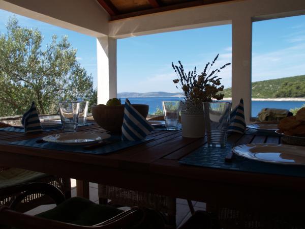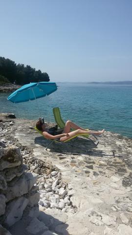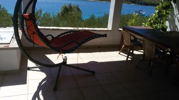 Bili smo 2 družin in smo neverjetno teden preživel tam. Super kraj za vse, ki išče tišini in zasebnosti na plaži. Lepe spalnice, prostorna in dobro opremljena kuhinja, ampak večino časa smo preživeli na veliki senci teraso z lepim pogledom na zaliv. Enostaven dostop do vode, ni potrebno čevlji, prednost zunanji tuš, ki smo ga uporabili namesto rednega kopalnico notranjosti. To ni enostavno, da se premaknete vse zaposlene od avtomobila do hiše, morate večkrat hoje od mesta, kjer ste parkirali avto do doma na ozki, skalnati poti, število ponovitev je odvisno od vaših rokah zmogljivosti in obsega osebja si prinesel, vendar smo ugotovili, lažji način in vprašal lastnika parkirati svoj čoln 50m od naših avtomobilov in uporabo poteh premakniti vrečke. Mislim, da bo ponudila ta nov način gibanja stvari drugih gostov iz zdaj. Lastnik je zelo koristno in prijazno, dobro angleško govoreče. Priporočam, da bi večino hrane in omejitev potovanj v Tkon za nakup hrane, ki se gibljejo z avtom na otok kamnitih cestah ni zelo udobno. Lahko kupite ribe iz lokalnega fishernan 2-3 krat na teden.