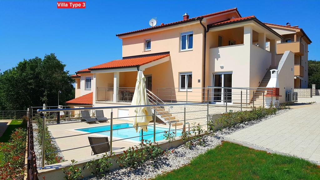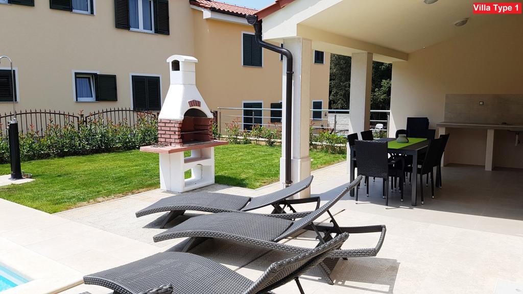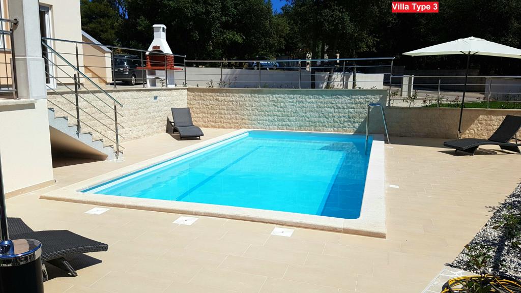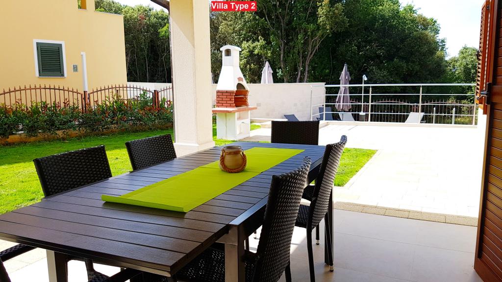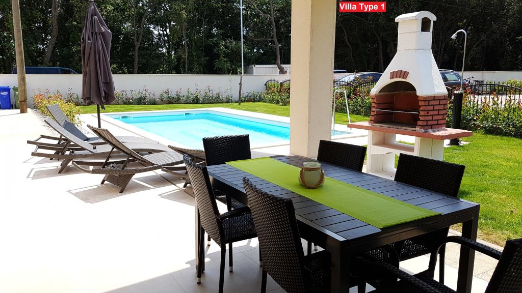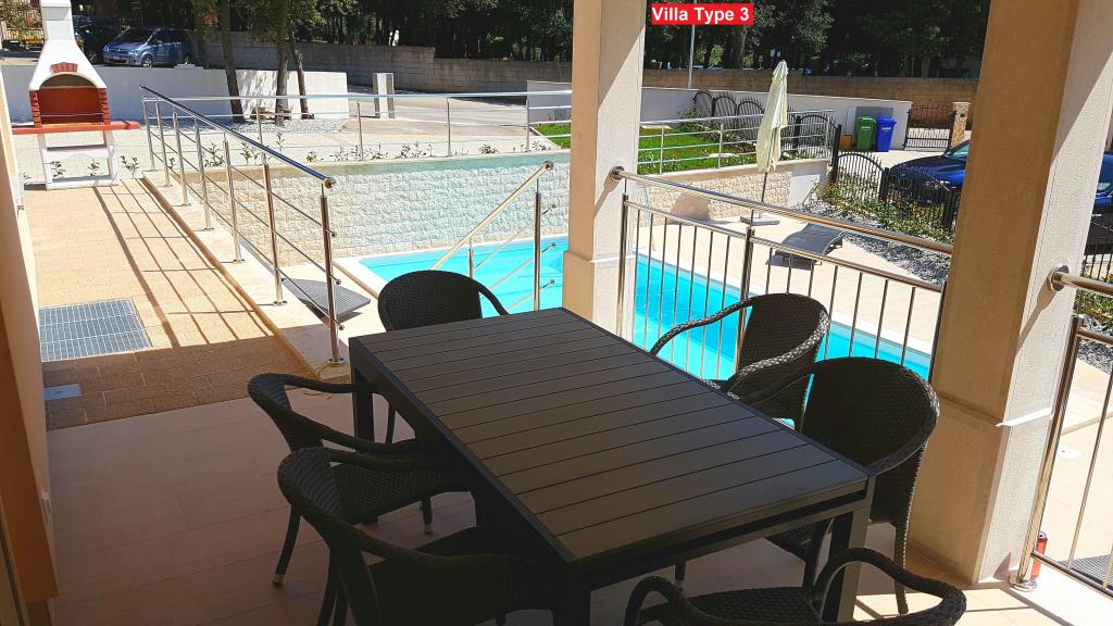 Izbirate lahko med 3 vrstami vil. Vse vile imajo enako notranjost, le izbrati morate Vilo tipa 1, tipa 2 ali tipa 3! Vila lahko sprejme do 8 plus 2 gosta. V vili so 4 spalnice, vsaka s svojo kopalnico. Sprostite se v prijetni dnevni sobi in pripravite okusne obroke v popolnoma opremljeni kuhinji z jedilnico. Sprostite se lahko ob zasebnem bazenu, poležavate na ležalnikih in uživate v lepoti sonca. Za svoje prijatelje in družino lahko pripravite tudi specialitete na žaru na oglje. Če želite iti na plažo, vzemite samo brisačo in že ste na plaži v nekaj minutah hoje, vendar so tudi čudovite restavracije v bližini. Vila je klimatizirana, ima WiFi, zasebno parkirišče za 3 avtomobile in ponuja vse za prijeten dopust.