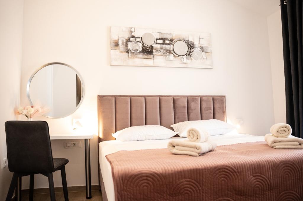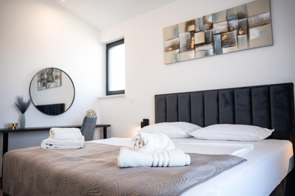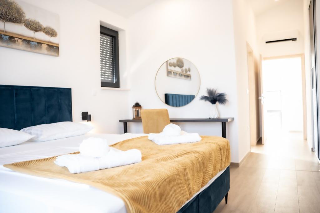 Ta čudovita vila se nahaja v zelo mirnem kraju Rebići, Barban, le 2,5 km od morja, obdana z naravnimi lepotami in zelenjem, in kot taka služi za brezskrbne in popolne počitnice, daleč od mestne gneče, hrupa in prometa. Ob jasnih dneh lahko z balkona v prvem nadstropju hiše vidite morje. Vsaka soba ima svojo teraso za trenutke zasebnosti in miru, ko je to potrebno. Vila je urejena zelo moderno, daje vam vzdušje in toplino doma, zgrajena je bila leta 2023 v zelo modernem stilu in vsebuje tudi zunanji objekt z zunanjo kuhinjo, hladilnikom in dvema žaroma, plin in drva -goreče. Okolje je posebej urejeno v kombinaciji moderne plaže okoli neskončnega bazena velikosti 10 x 3,8 metra in čudovite zelenice, okrašene s starimi oljkami in drugimi raznovrstnimi rastlinami, ki ustvarjajo oazo za sprostitev. na dvorišču so ležalniki, senčniki in dodatni objekti kot so namizni tenis, namizni nogomet.