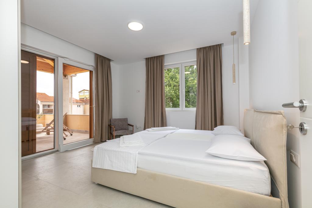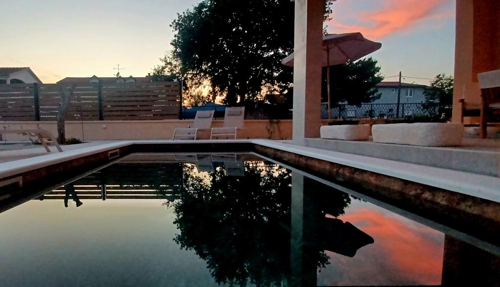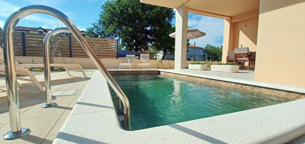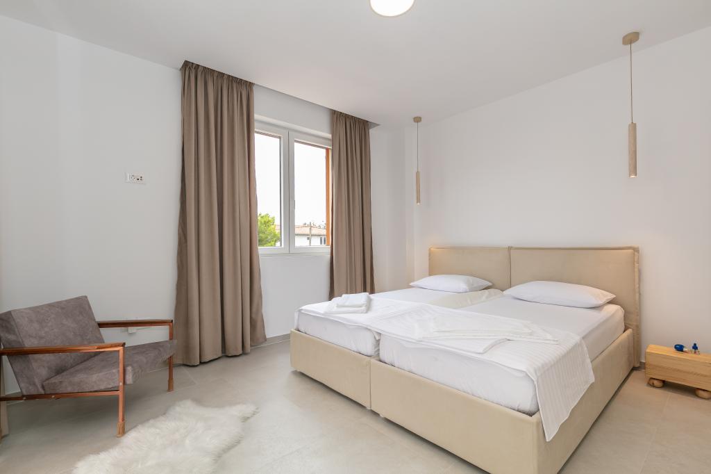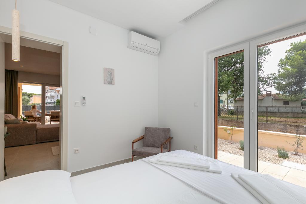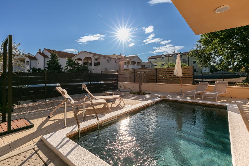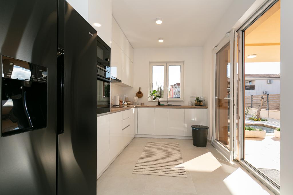 Moderno opremljena in očarljiva vila z bazenom, ki se nahaja v mirnem delu Biograda na Moru, je idealna za sproščujoče počitnice. Elegantno opremljena notranjost ponuja vse, kar potrebujete za udobno bivanje, prostorno dvorišče z zasebnim bazenom in prostorom za sončenje pa zagotavlja popolno uživanje v sredozemskem soncu. Uživajte v kombinaciji udobja, stila in bližine morja v tej čudoviti vili. Če iščete mirno, sproščujočo in udobno oazo za svoje počitnice, je to idealen kraj in hiša, ki daje prednost tej vrsti počitnic.