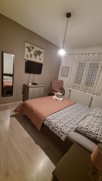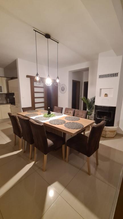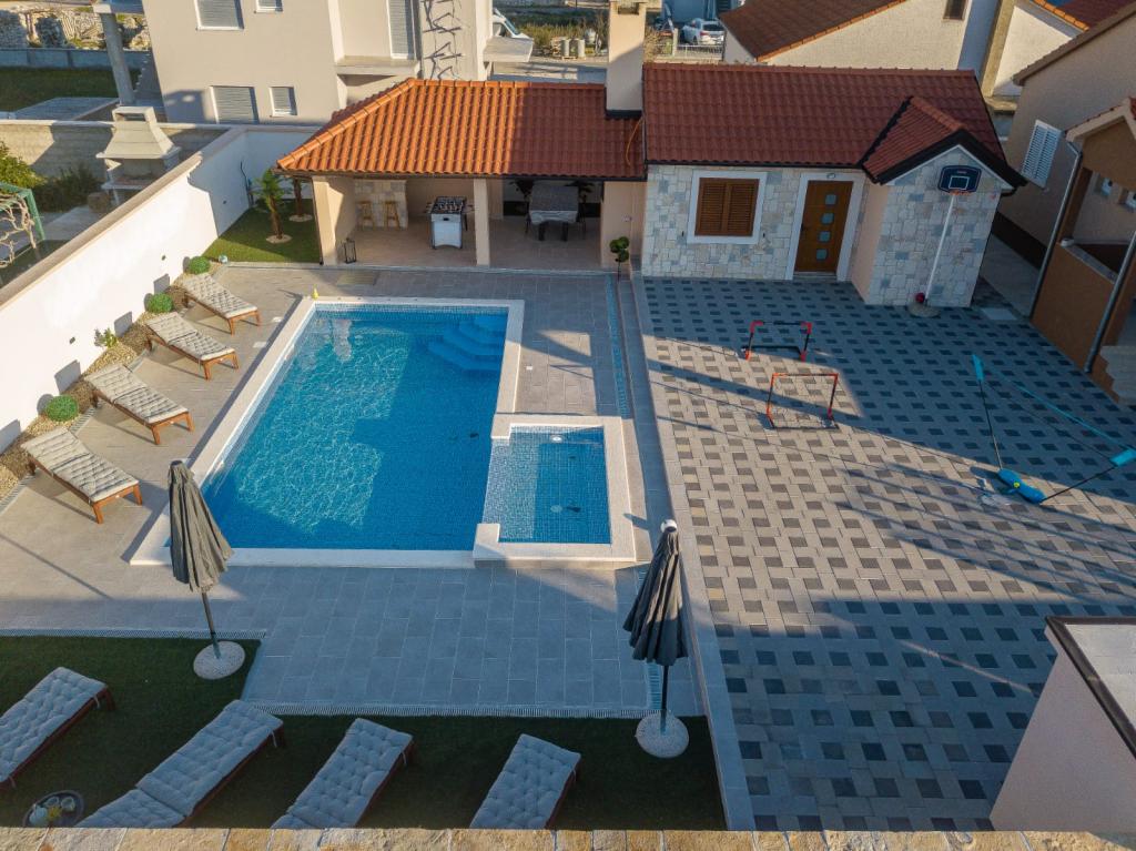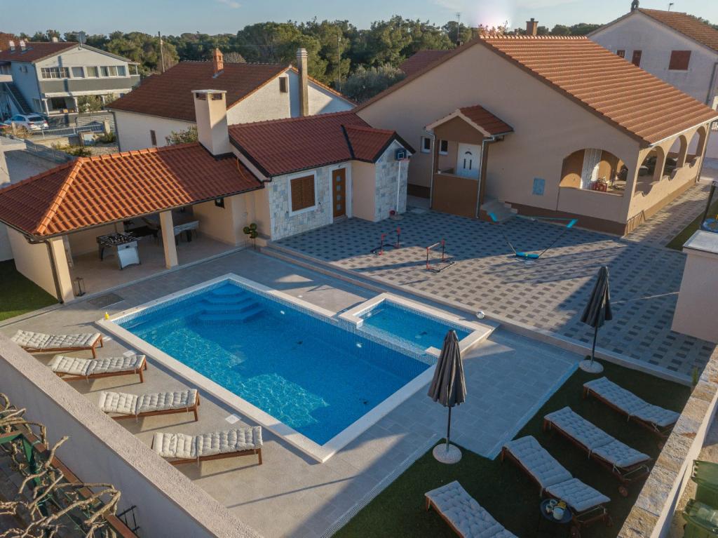 Moderna vila z bazenom, 3 km od centra mesta. Objekt ima bazen velikosti 8x4 metre in otroški bazen velikosti 3x1,5 metra. Bogata vsebina za otroke, namizni nogomet, biljard, namizni tenis, tobogan, trampolin...