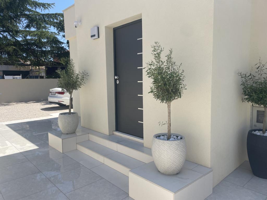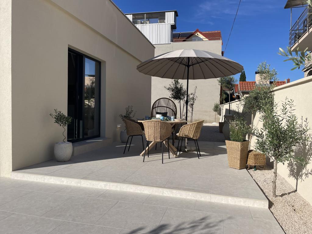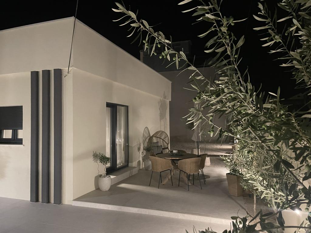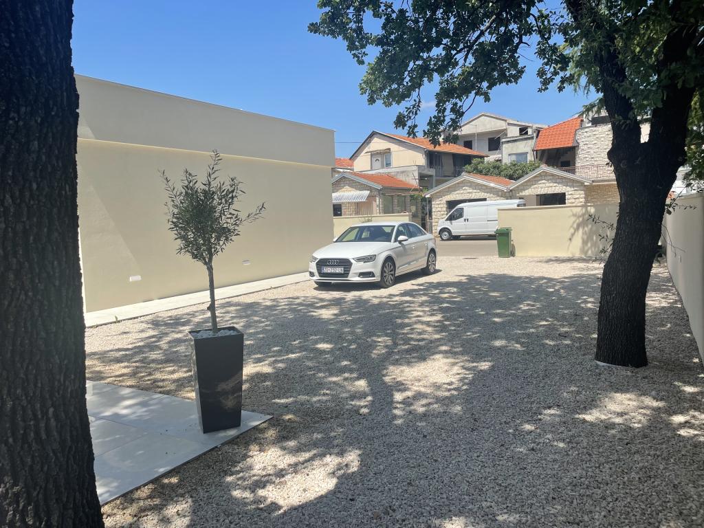 Moderno opremljena vila z velikim dvoriščem in parkiriščem. Dizajnersko opremljena in 10 minut hoje od plaže ter 5 minut hoje od centra. Stavba ima 3 spalnice, je v celoti klimatizirana in ima talno ogrevanje. Območje okoli hiše je urejeno za celodnevno bivanje, še posebej glede na stoletna drevesa, ki zagotavljajo izjemno senco v vročih poletnih mesecih.