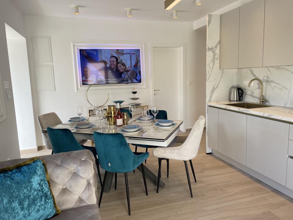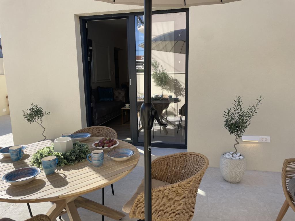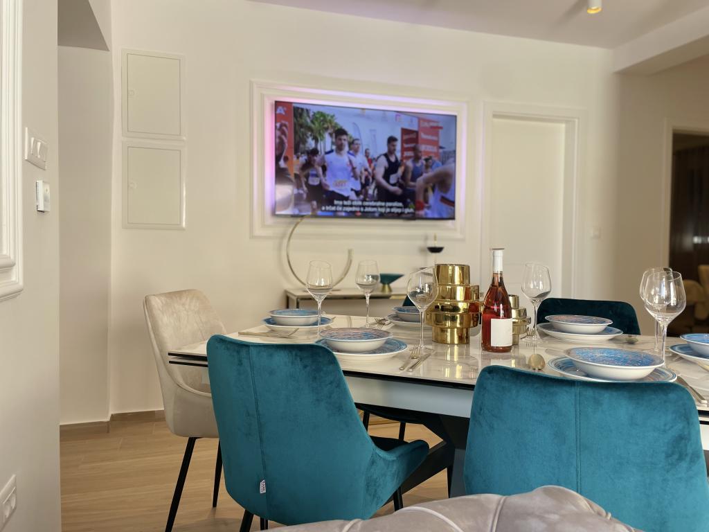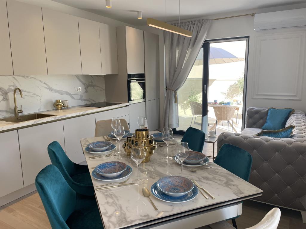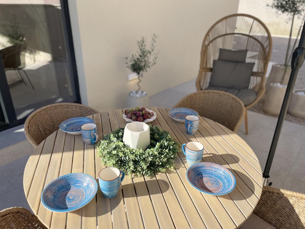 Moderno opremljena vila z velikim dvoriščem in parkiriščem. Dizajnersko opremljena in 10 minut hoje od plaže ter 5 minut hoje od centra. Stavba ima 3 spalnice, je v celoti klimatizirana in ima talno ogrevanje. Območje okoli hiše je urejeno za celodnevno bivanje, še posebej glede na stoletna drevesa, ki zagotavljajo izjemno senco v vročih poletnih mesecih.